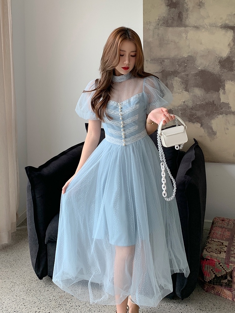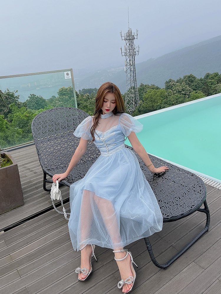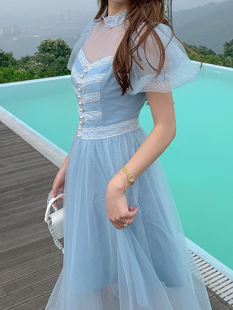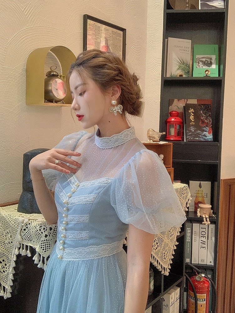 气质法式宫廷风仙女裙泡泡袖网纱连衣裙