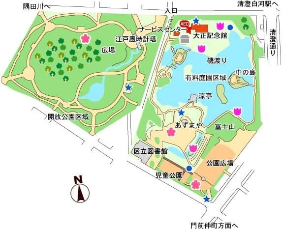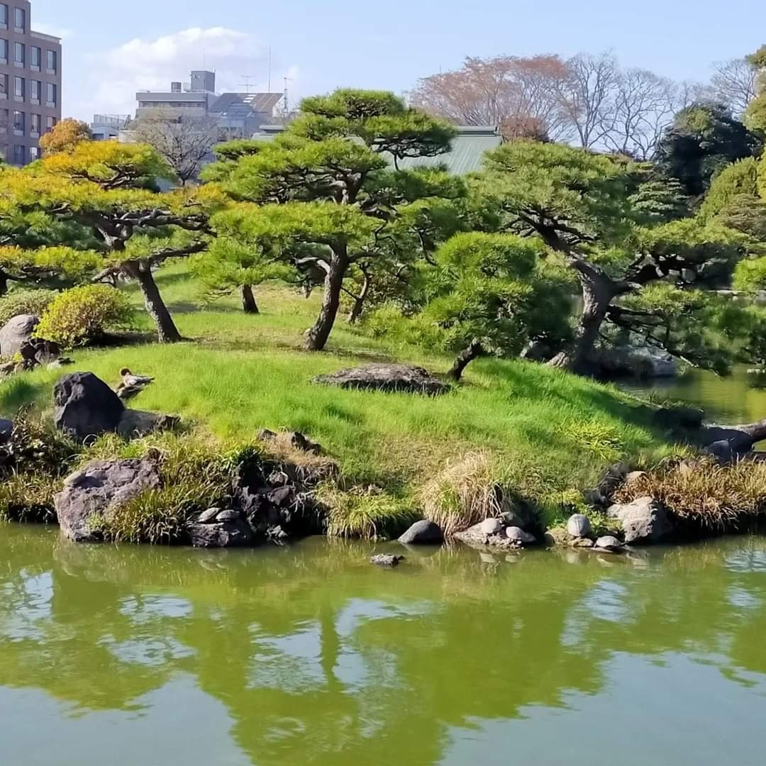 「清澄庭园」,这是一座传闻曾是元禄时期富商纪伊国屋「文左卫门」屋敷,到了明治时代,三菱财团的创办人「岩崎弥太郎」把当时已经荒废的这个地方买下来作为庭院。 「清澄庭园」一开始并不是现在这个风貌,它可是历经了岩崎家族三代的整治,「岩崎弥太郎」收购了这个荒废的园地计画将其打造成慰劳三菱社员与接待宾客的庭园,在1880年(明治13年)竣工,命名为「深川亲睦园」。 继任的三菱社长「岩崎弥之助」引入隅田川河水,在1891年(明治24年)将这里改造为「洄游式筑山林泉庭园」,西侧的洋馆则是请「日本西方建筑之父」康德所规划设计的。 1923年(大正12年)的关东大地震造成庭园严重毁损,隔一年三菱第三代社长「岩崎久弥」将庭园东半部捐赠给东京市作为公园用地,1973年(昭和48年)东京都收购剩余的西半部庭园,隔年开始整备,1977年(昭和52年)开园,整个「清澄庭园」就此呈现完整风貌。