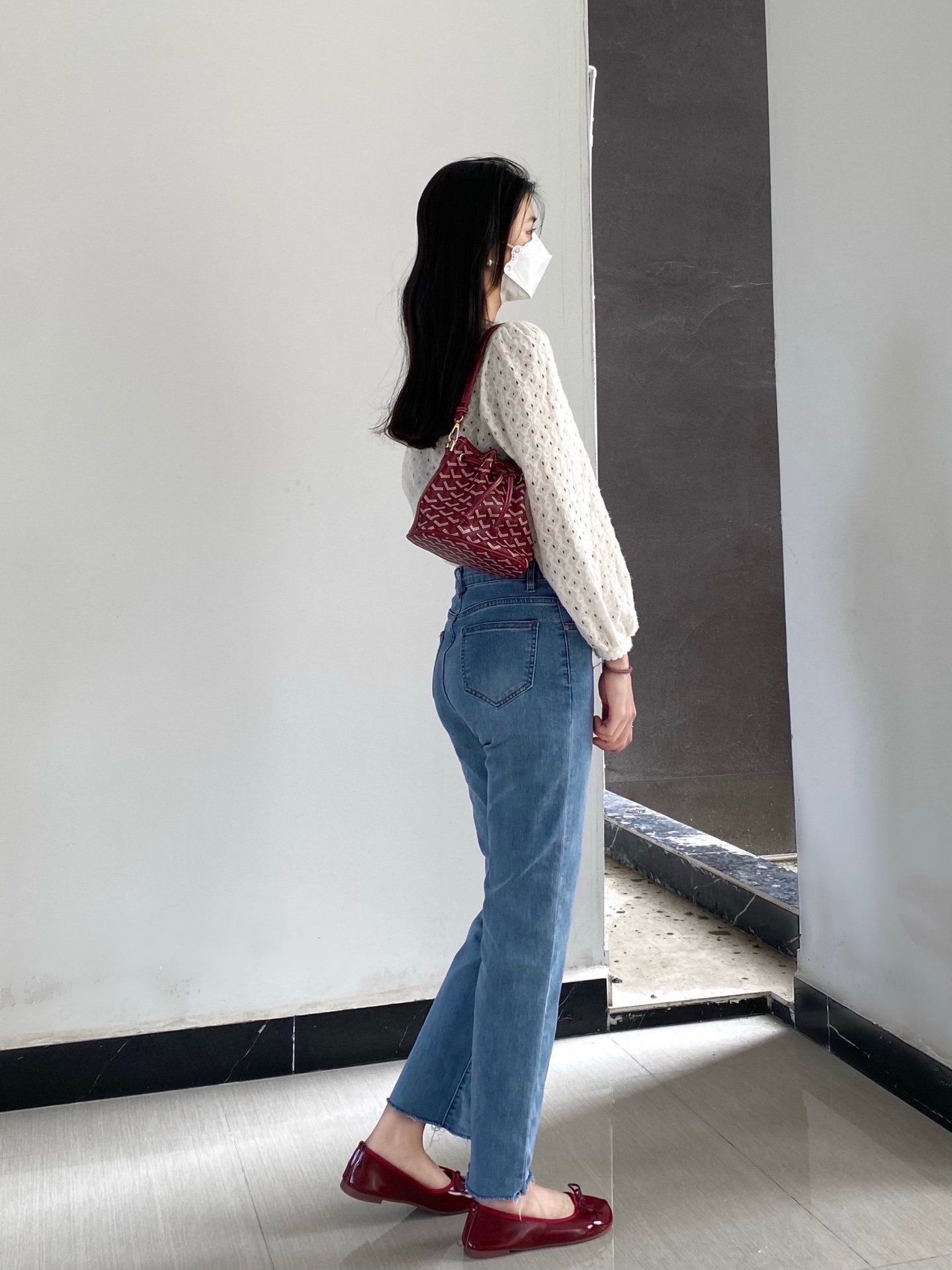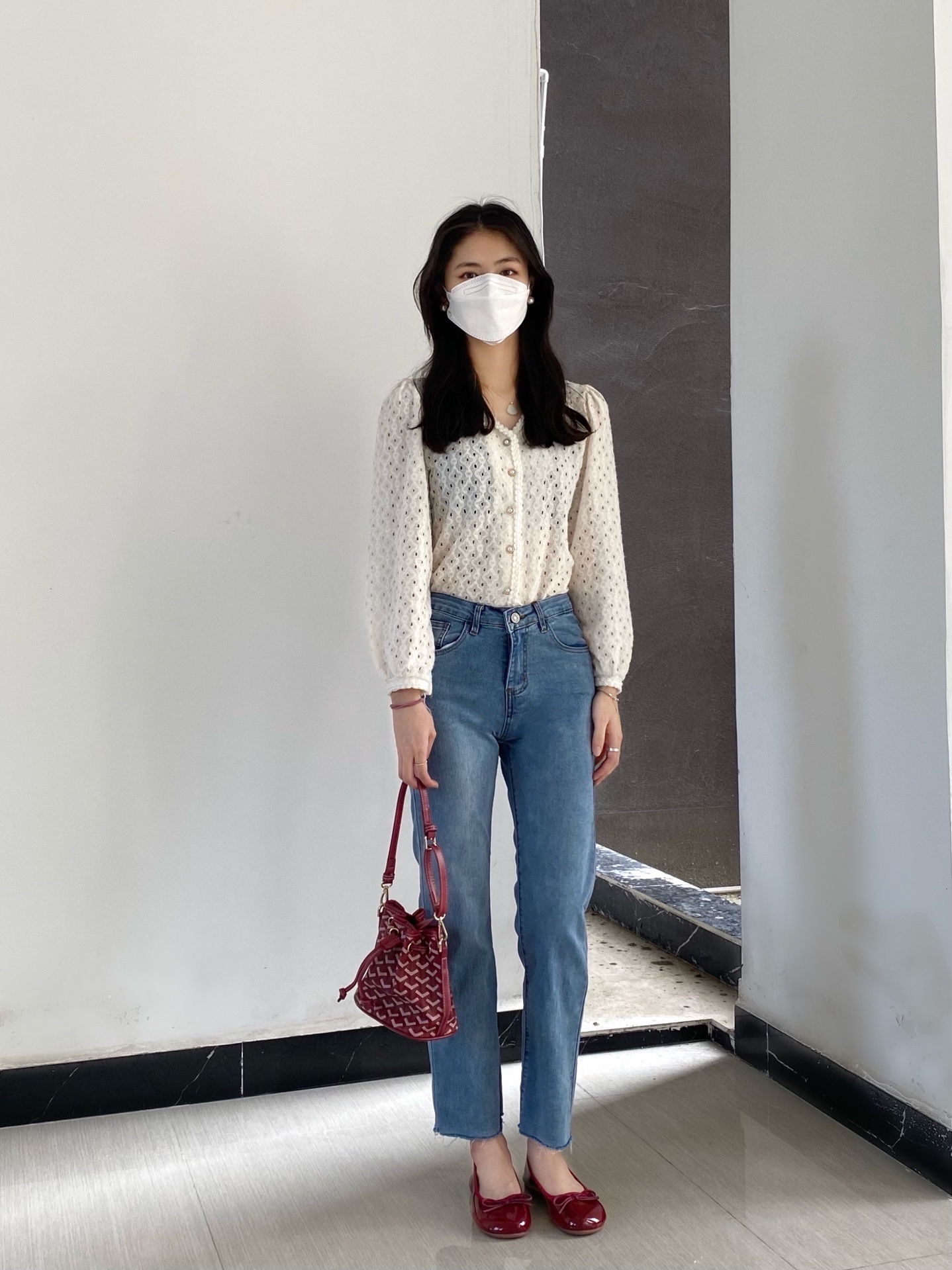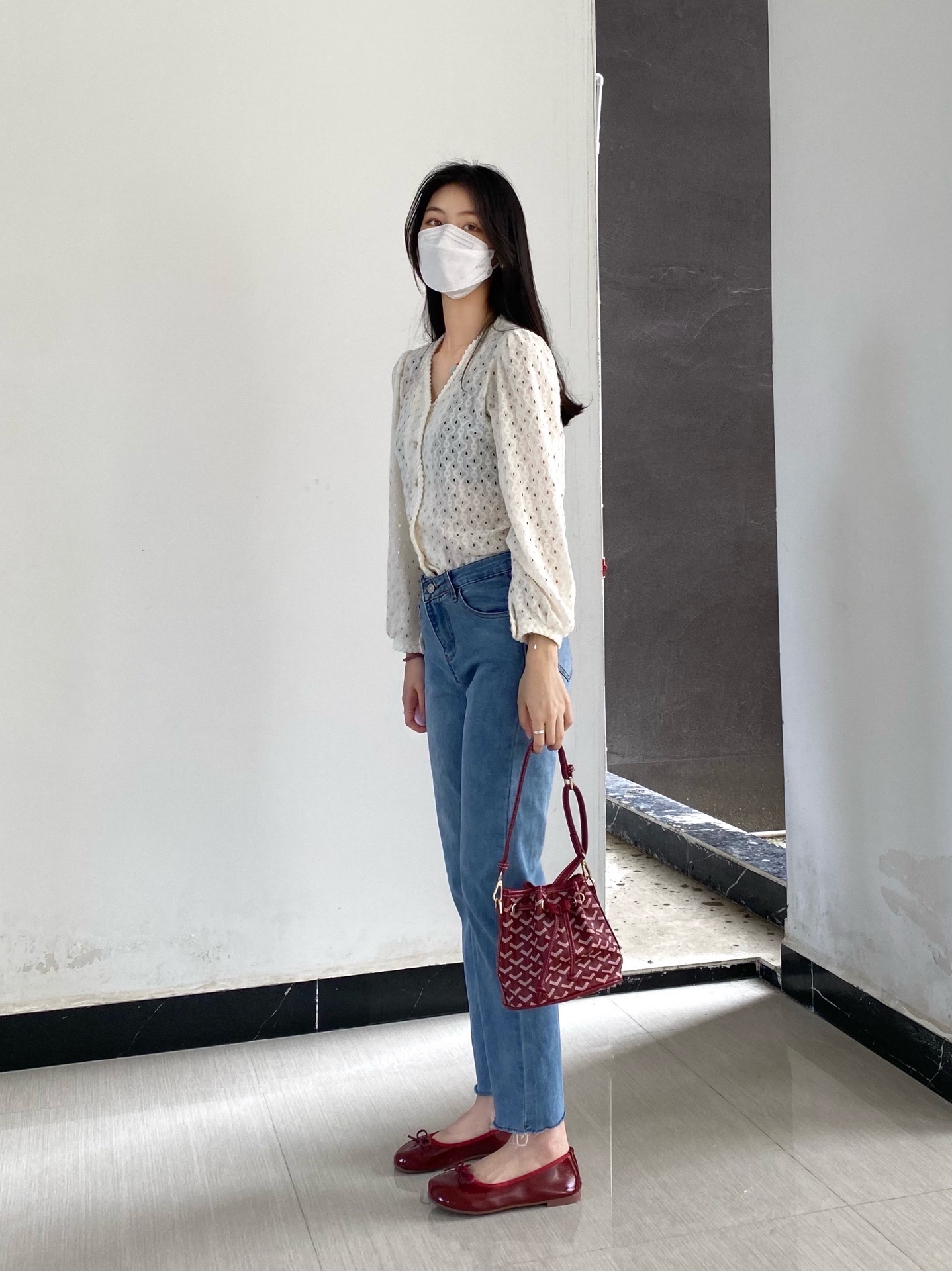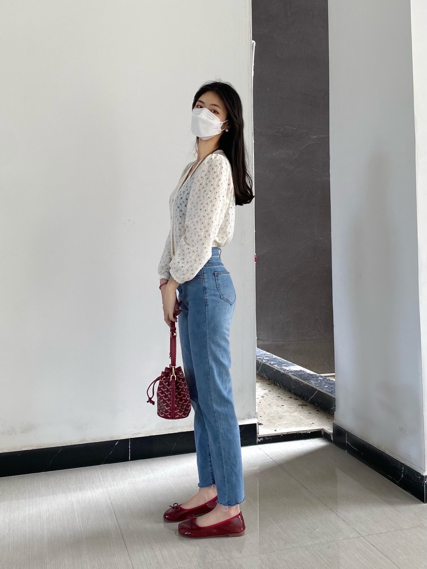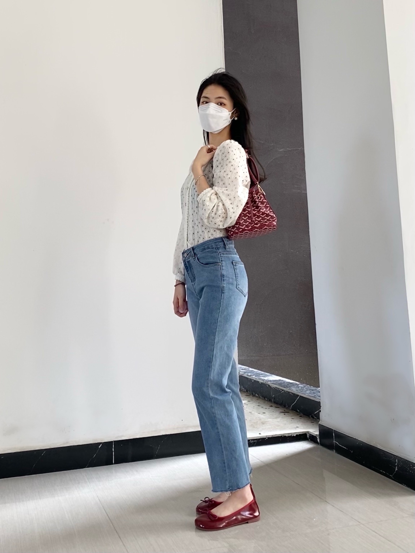 白衣➕牛仔裤👖➕小红鞋👠