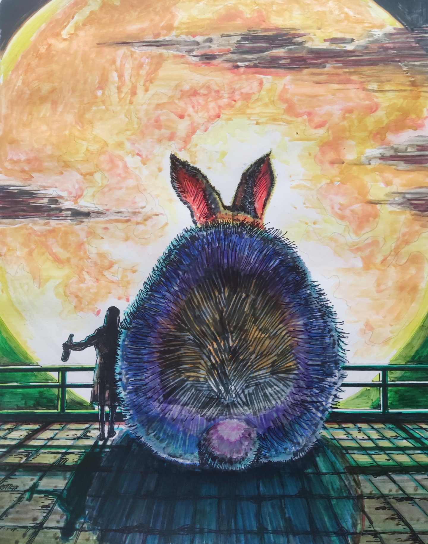 临摹已故日本著名插画师物久保的作品,在黑夜(当下疫情),我们要看到内心的光明和冷静的思考,那颗其实你不怂,但你逃避强大和成长的心!加油!
