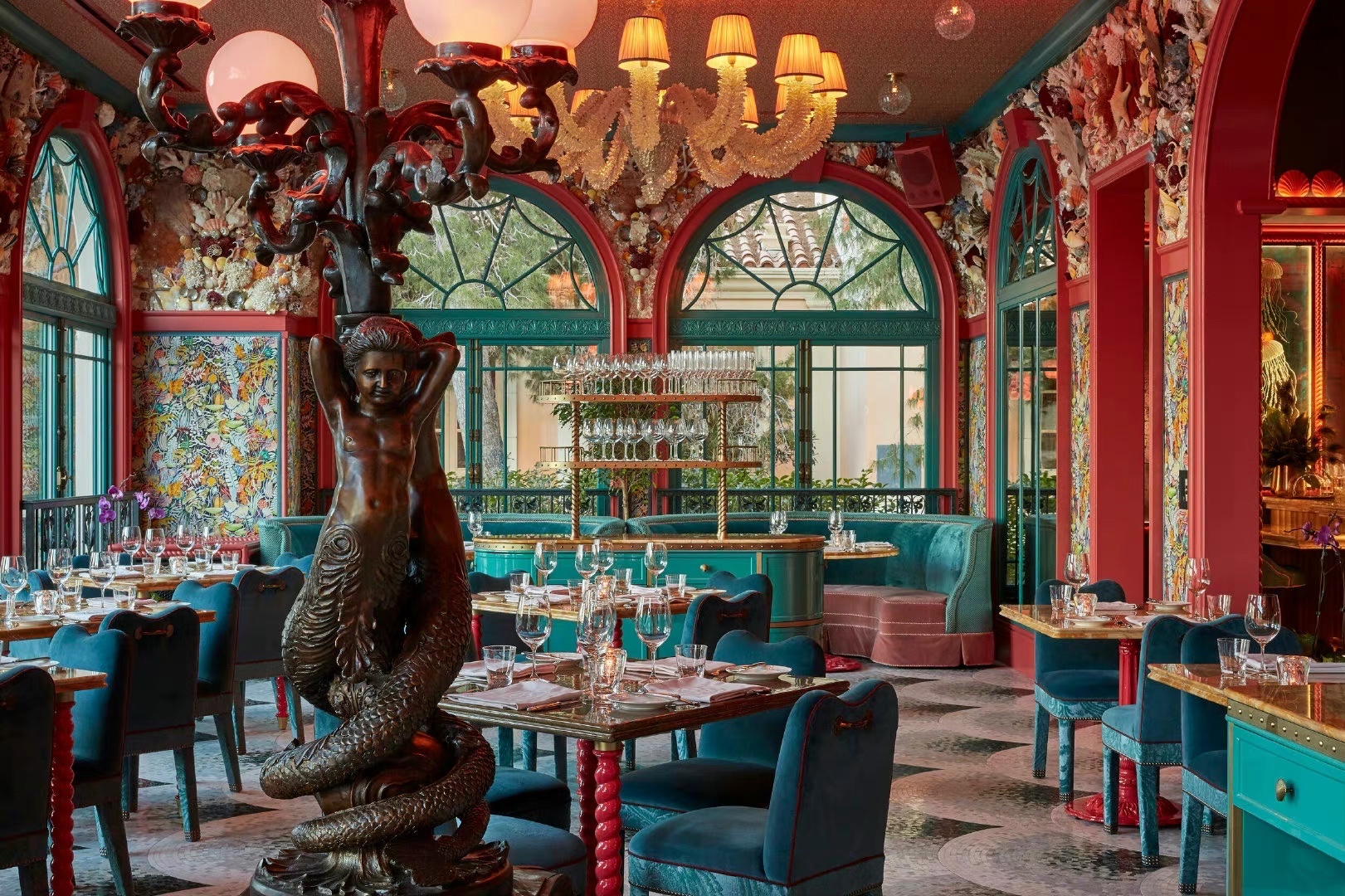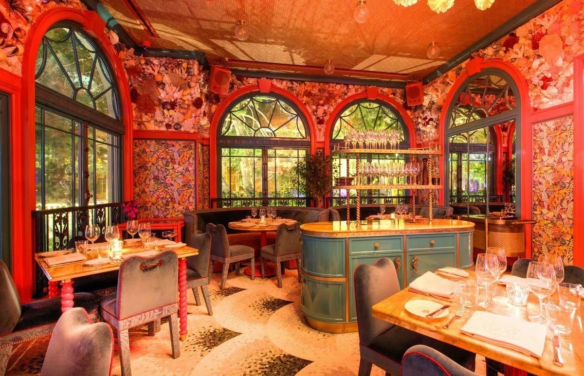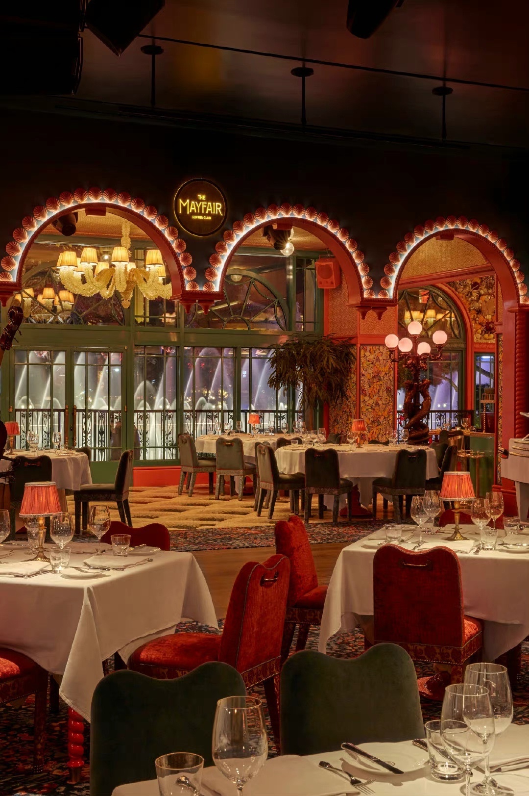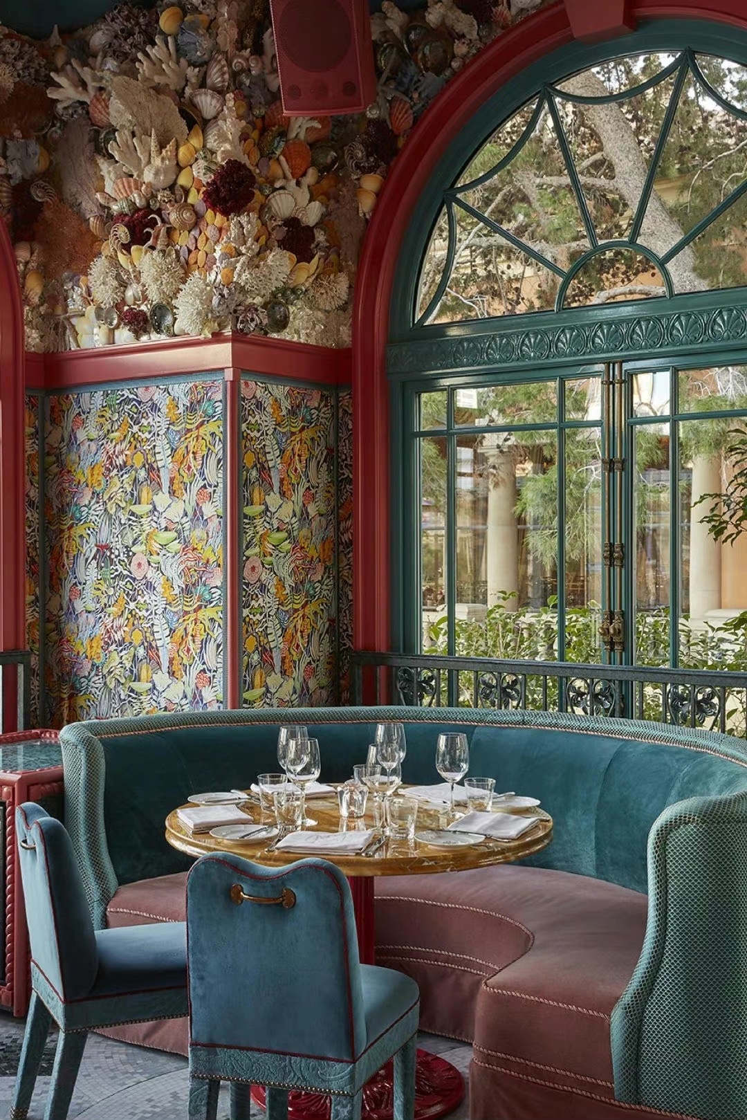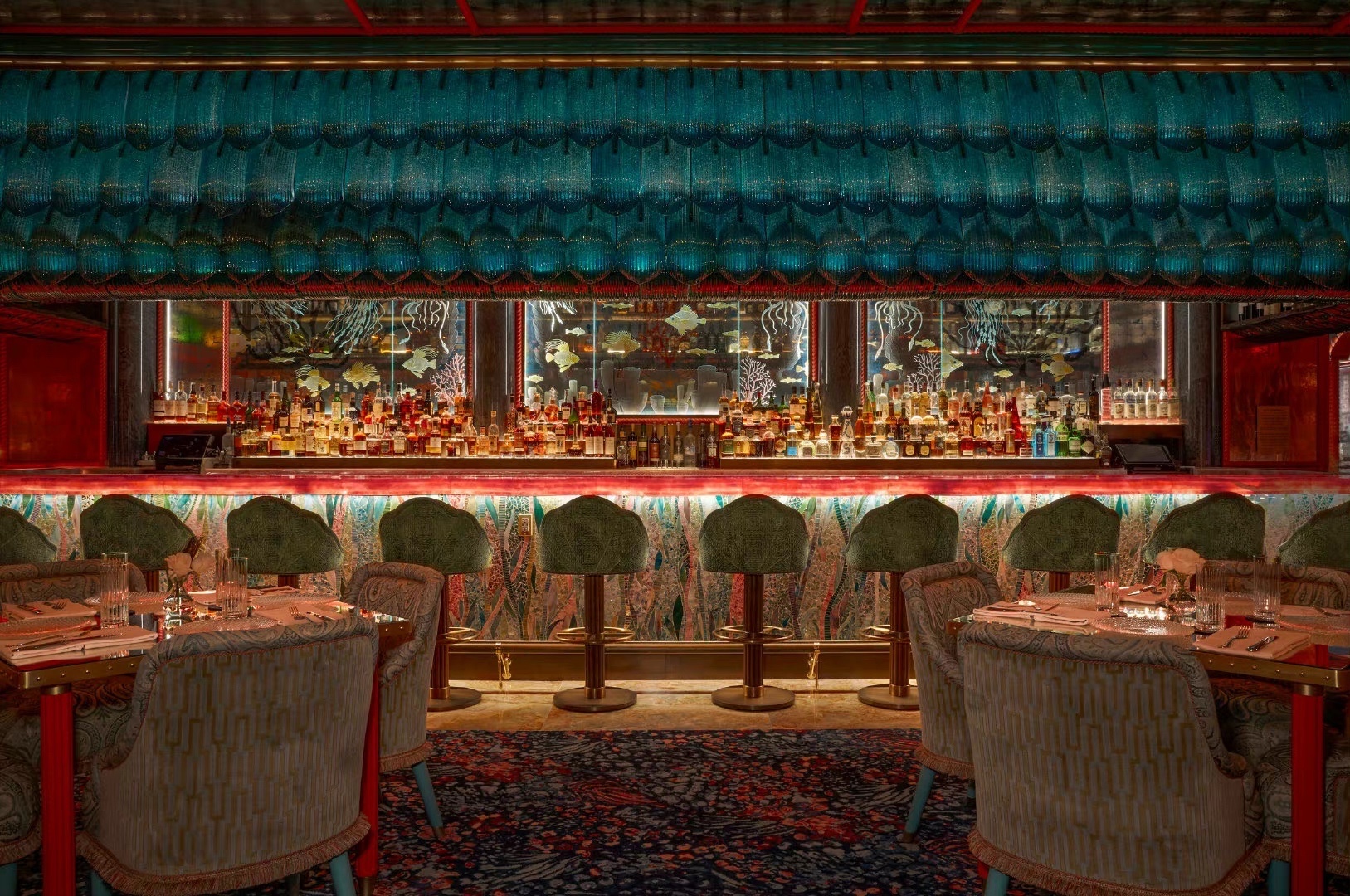 伦敦著名的私人会所 Annabel‘s 的设计师 这次在拉斯维加斯 Bellagio 酒店里的 Mayfair Supper Club 里创作了另一处狂想世界 高饱和度的蓝与红撞色 暧昧的灯光下回响着上个世纪的好莱坞风采 角落里珊瑚贝壳的海洋装饰旁添奇幻色彩
