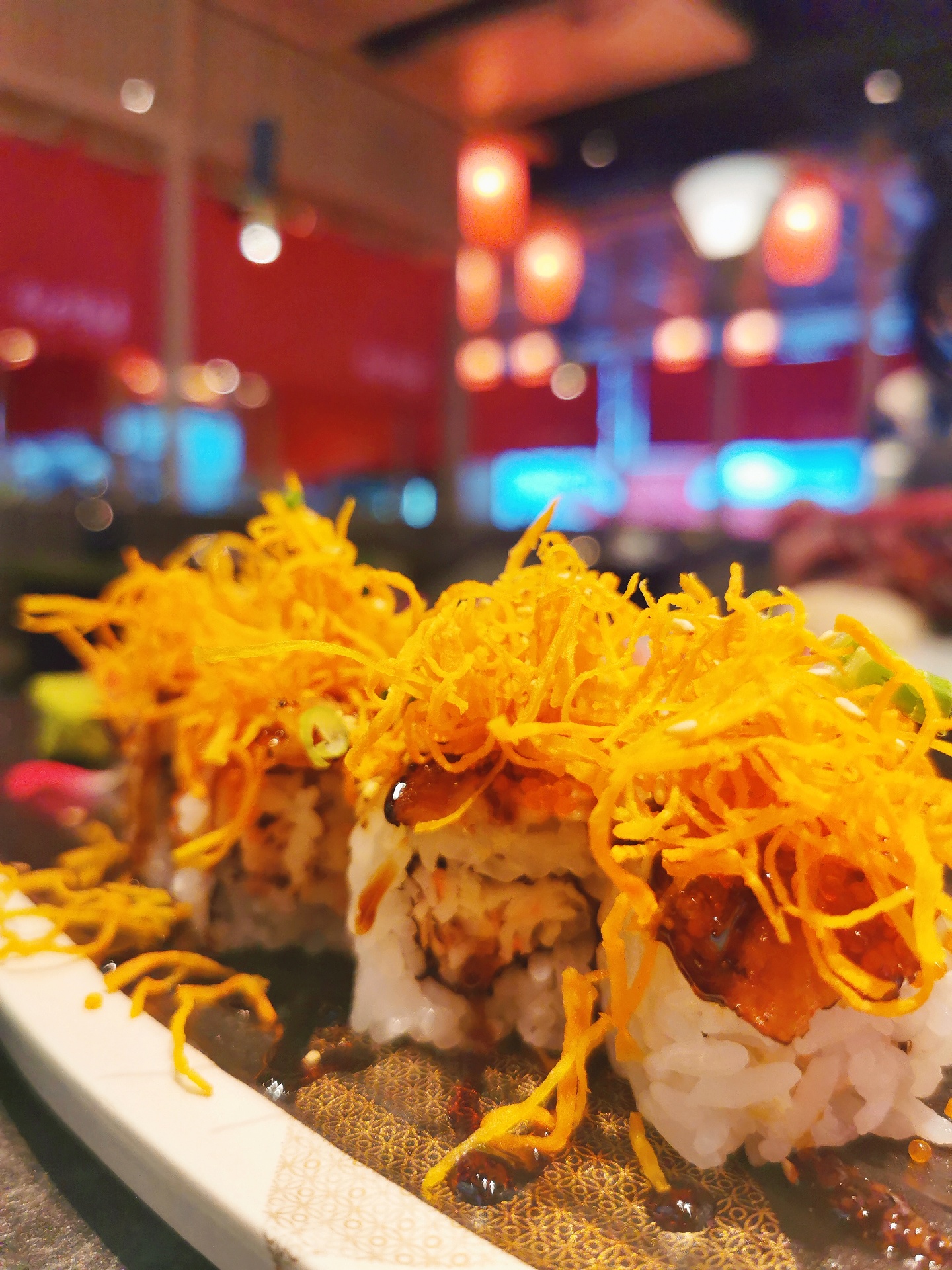 寿司个头不是很大,可以一口一个,但料还是很足的,加上上面脆脆的,口感很丰富