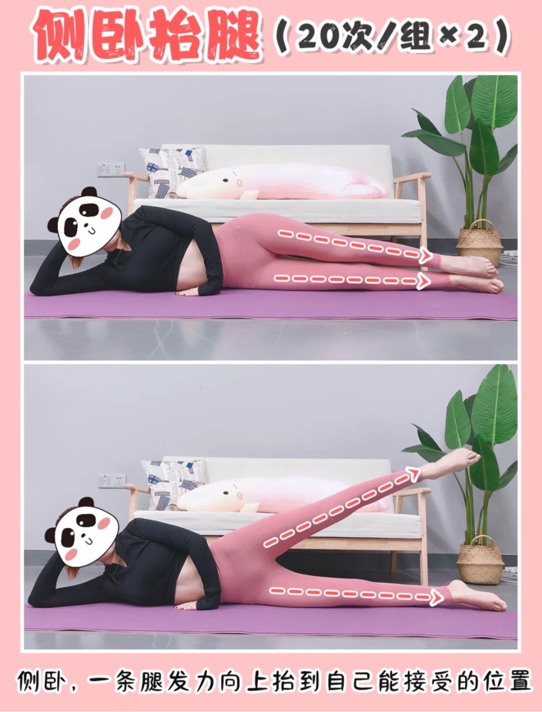 🔸侧卧抬腿(20次/组 x2)