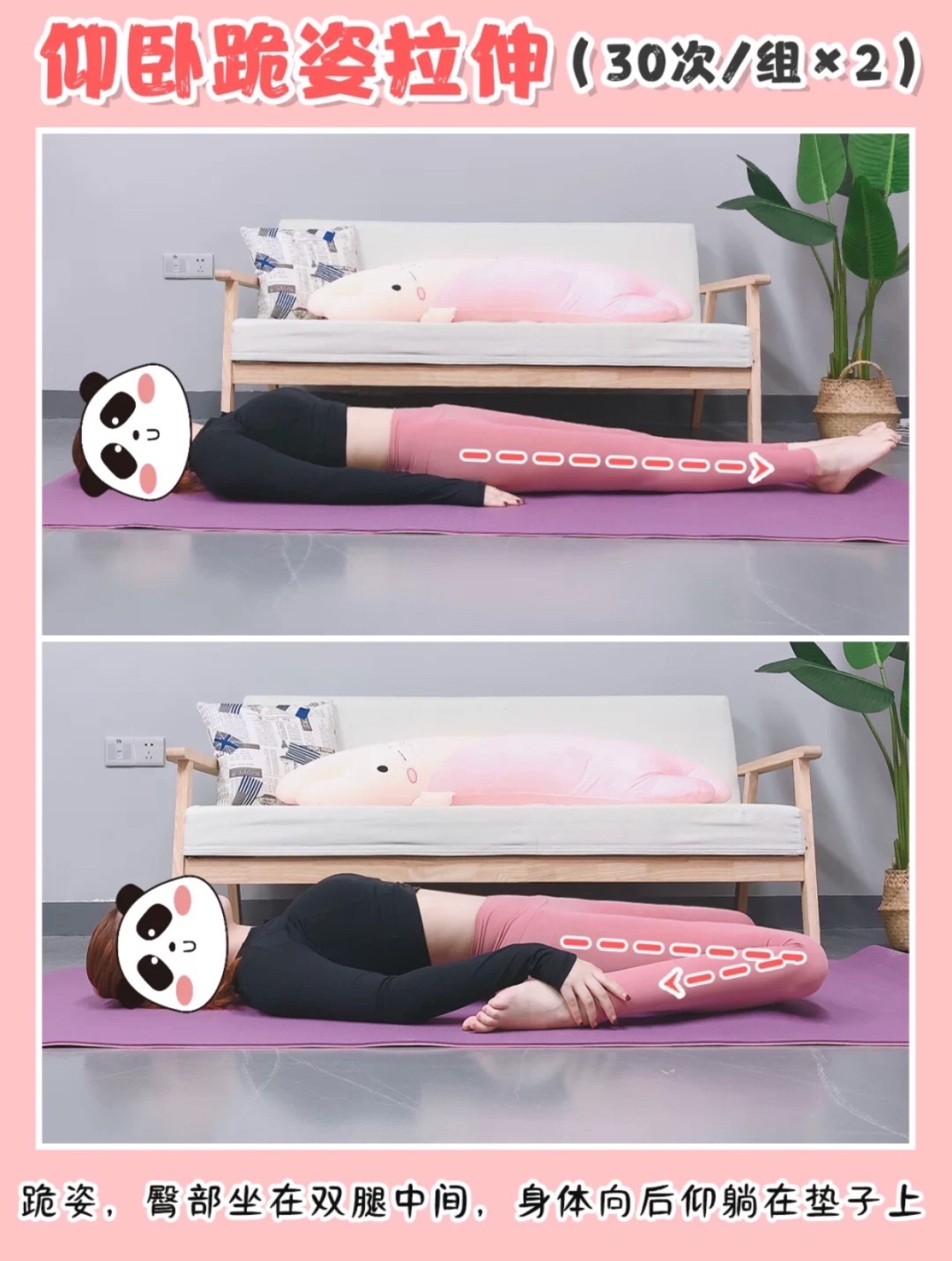🔸仰卧跪姿拉伸(30s/组 x2)