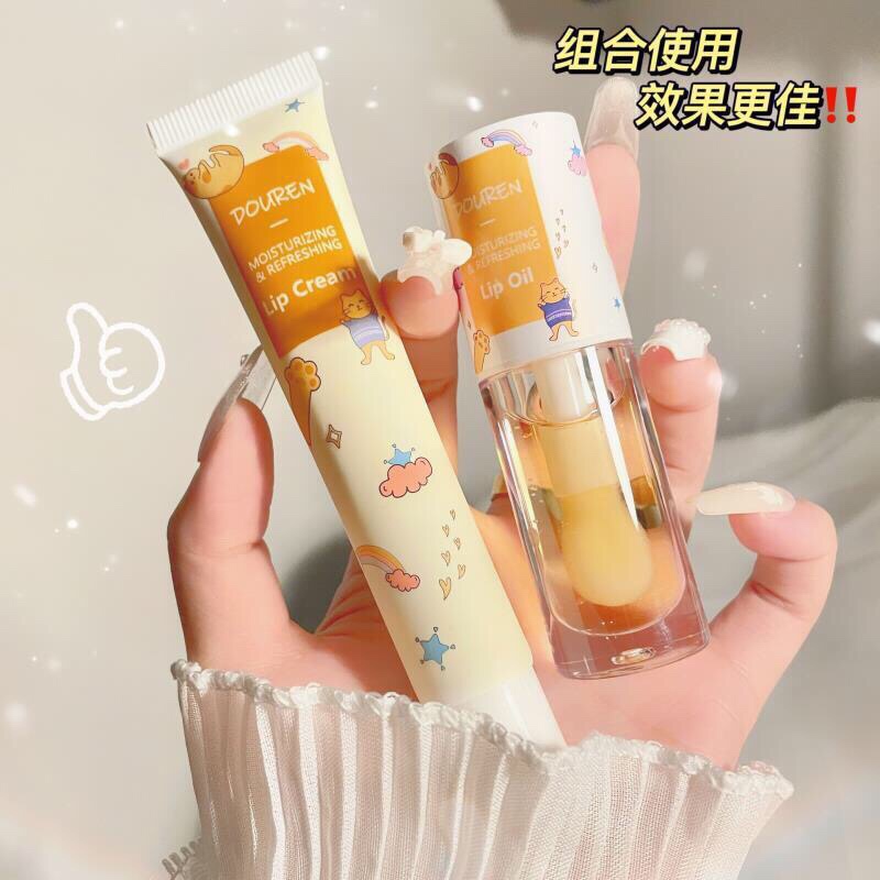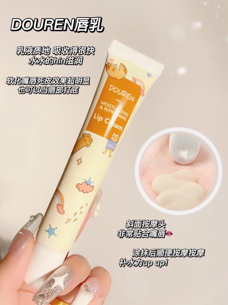 睡前涂上DOUREN唇乳按摩一下