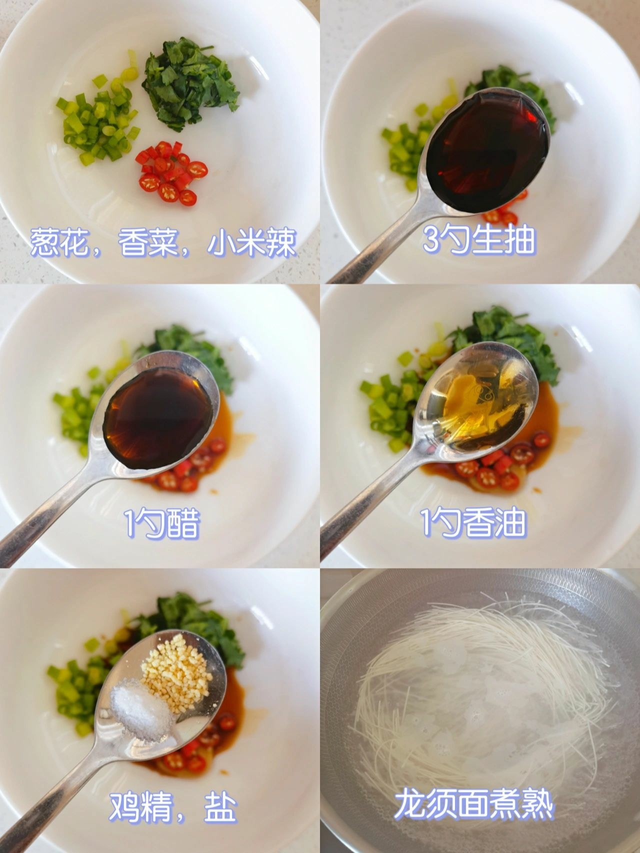 1⃣ 料汁:葱花➕小米辣 ➕小米辣 ➕2勺生抽 ➕ 1勺醋➕1勺香油 ➕ 一点鸡精➕ 1点盐