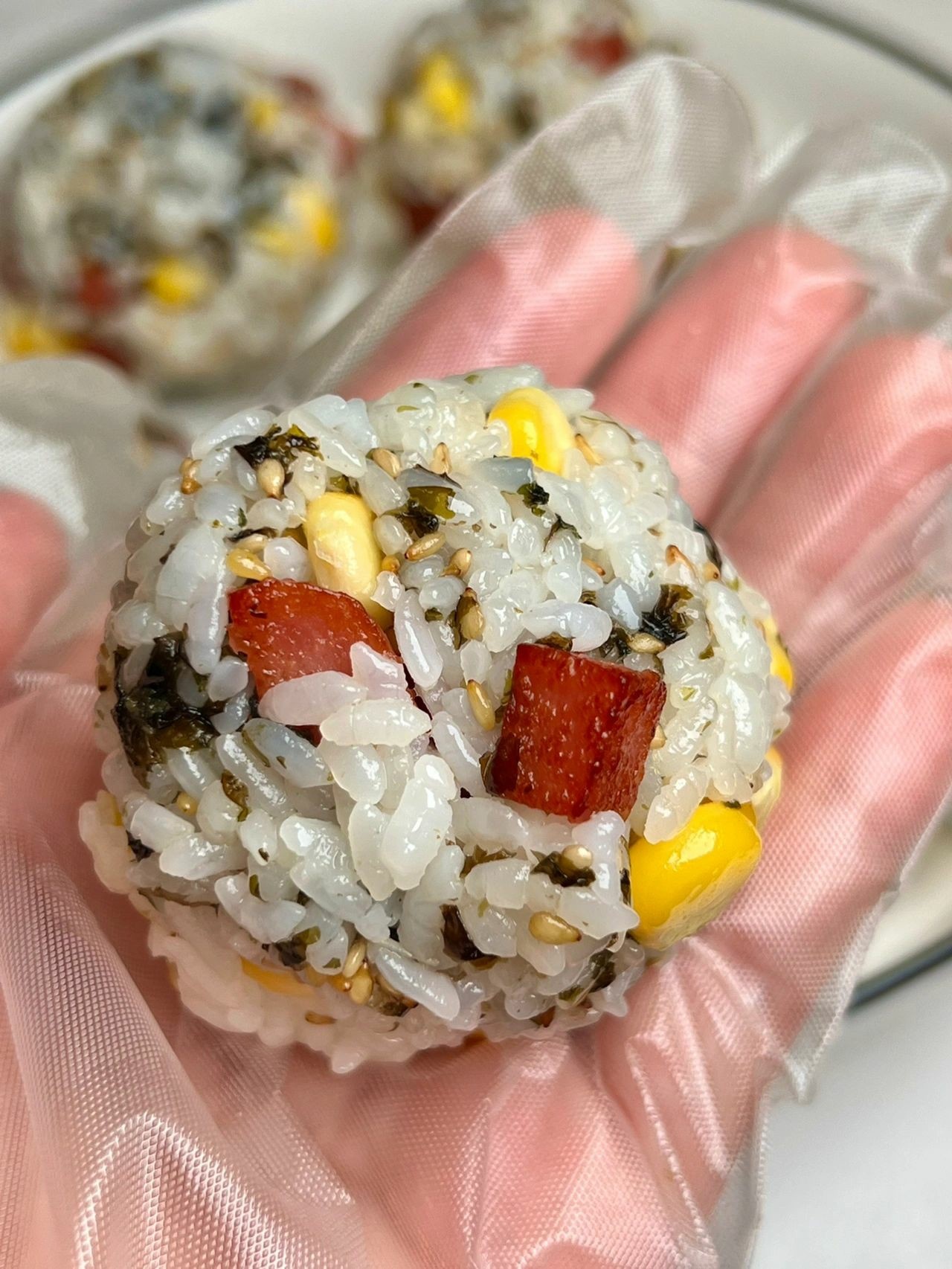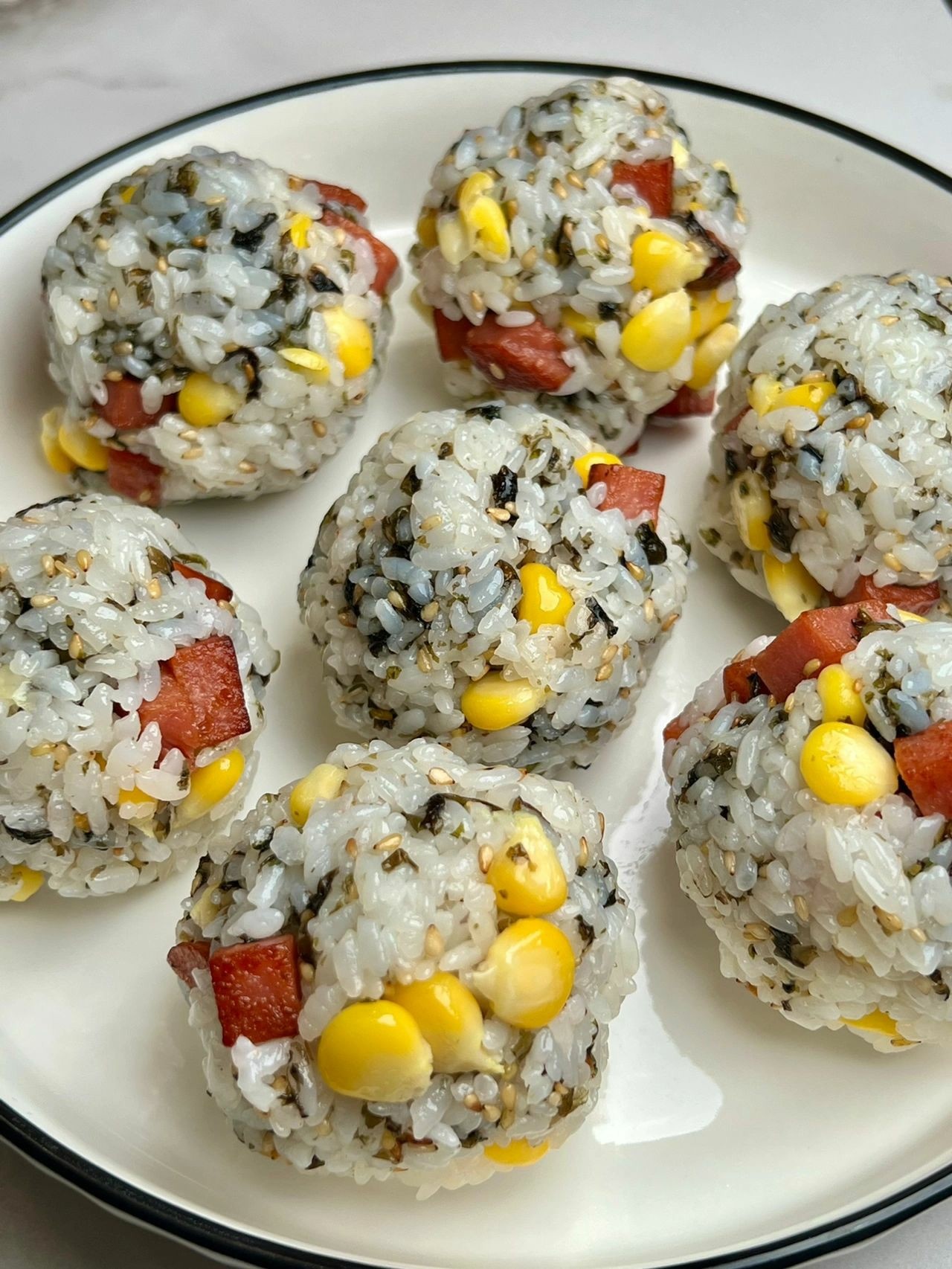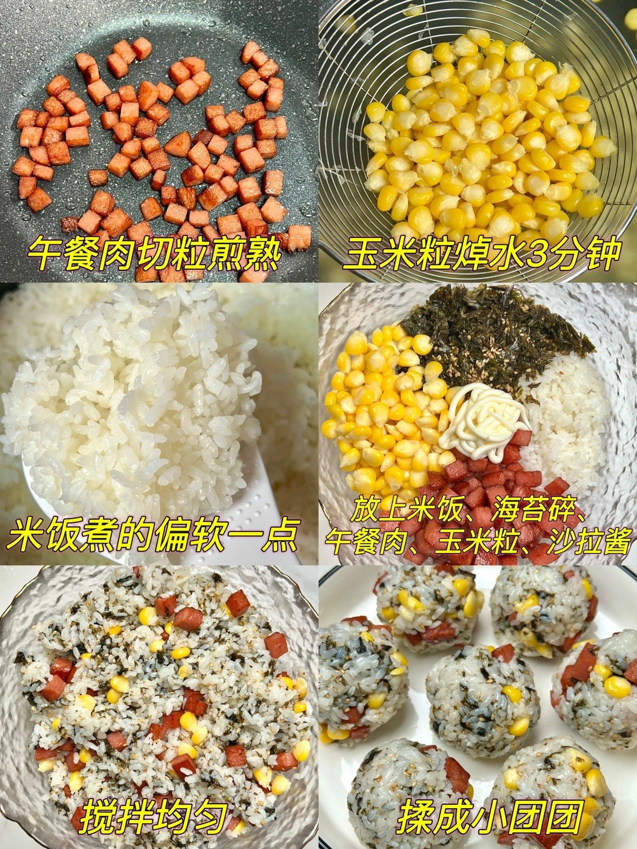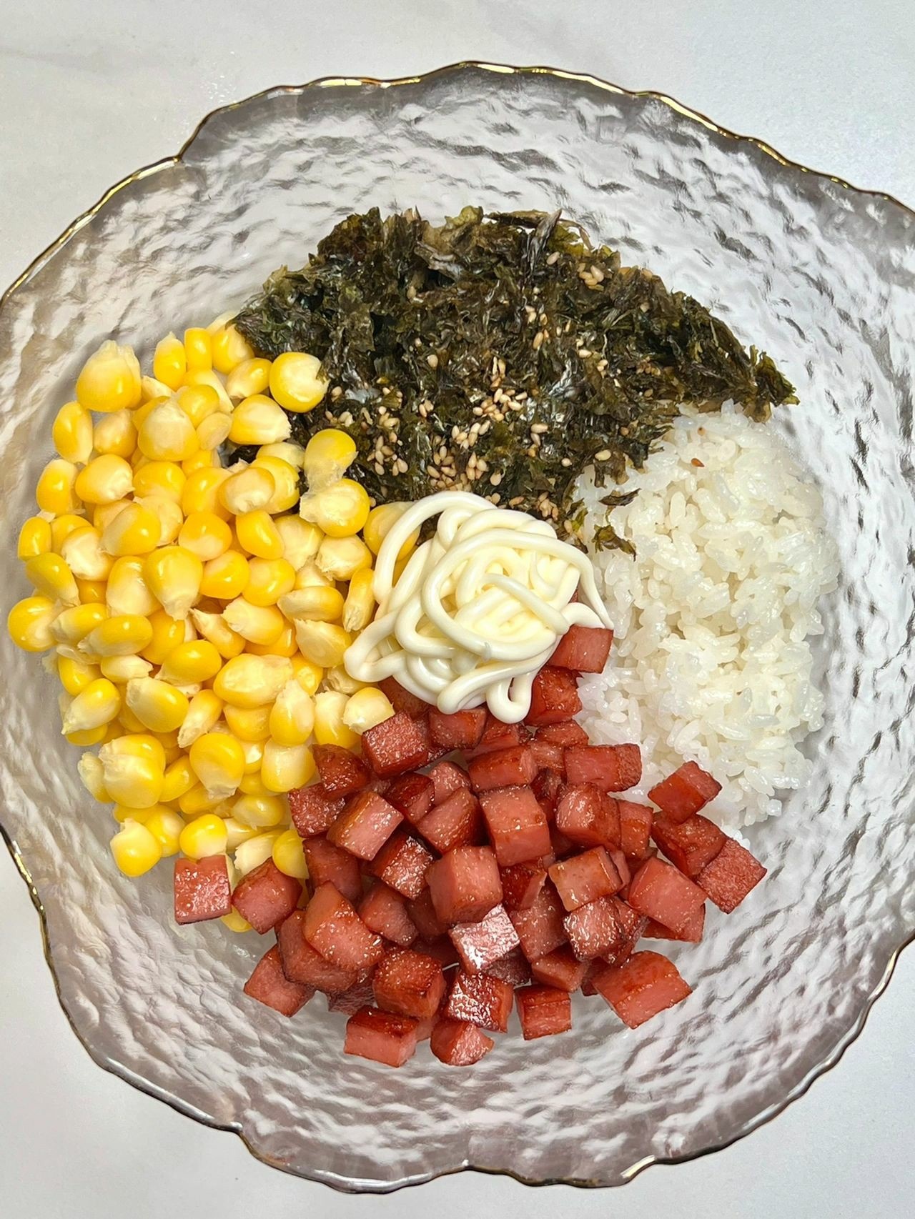 🌼食材:米饭、午餐肉、海苔碎、玉米粒、沙拉酱