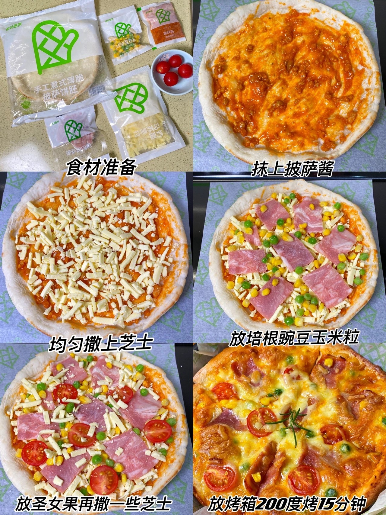 3⃣️烤箱提前200度预热,放披萨上下火烤15分钟即可,喜欢吃软一点的烤10分钟也可~