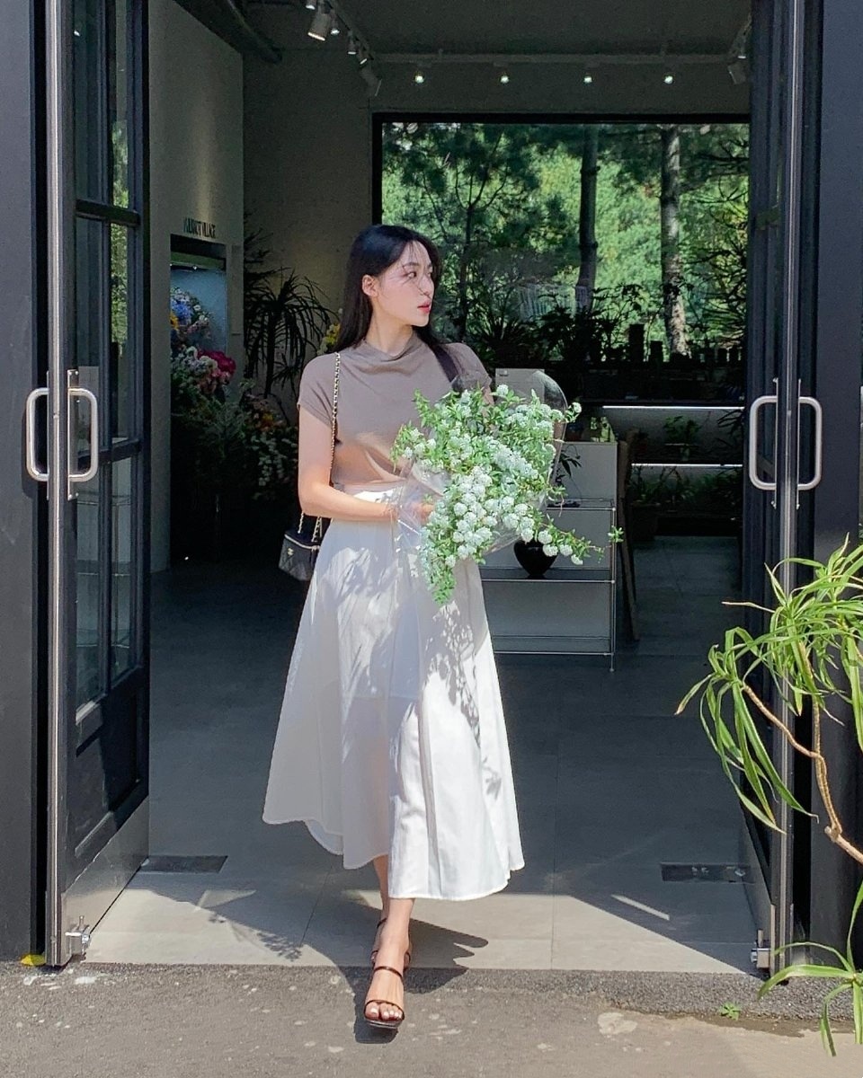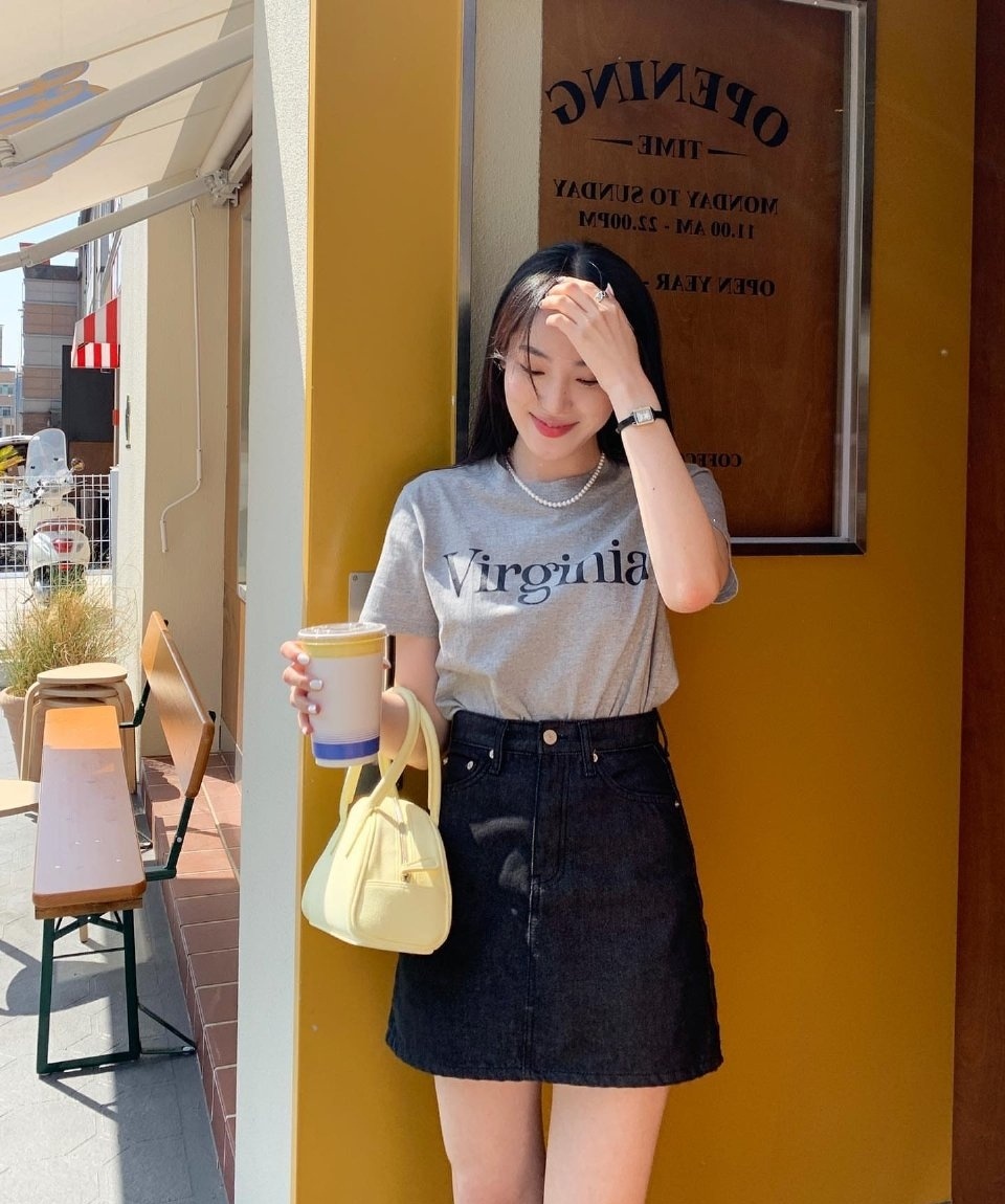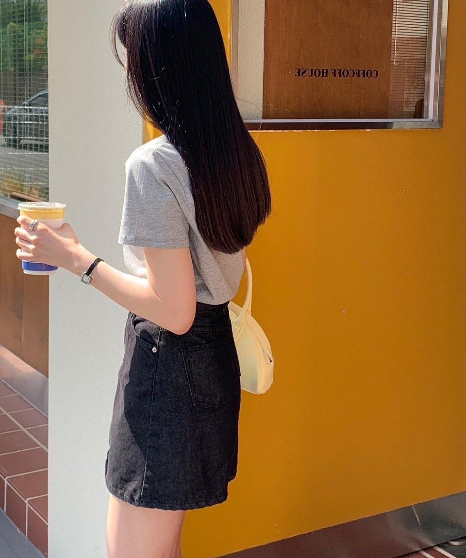 更新时尚穿搭,灰色短袖搭配黑色裙子,简洁大方,分享的穿搭照着学习,你可以美丽出门@MT小助手 。