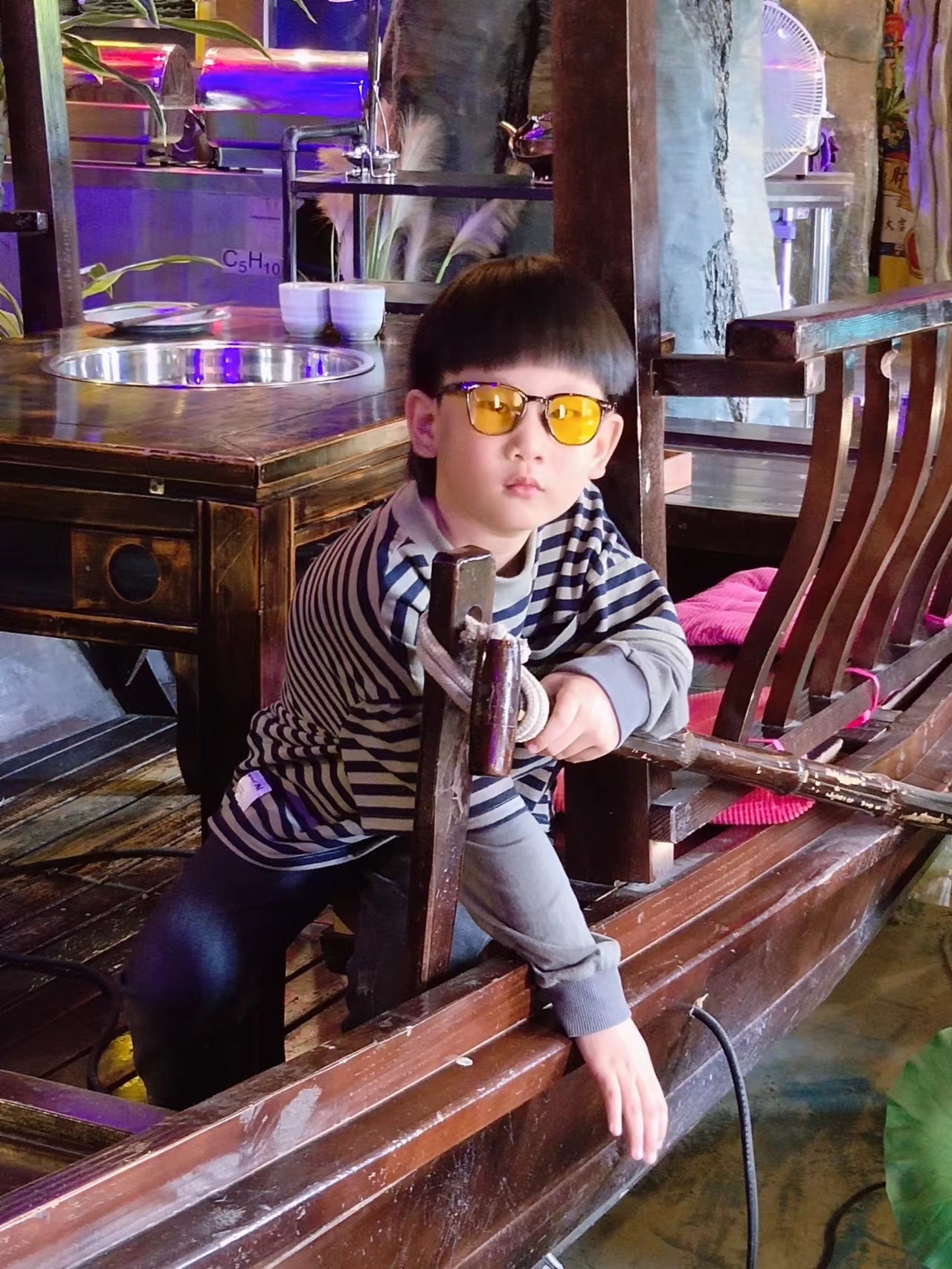 店里还有一搜船,还可以坐在船上用餐呢🚤