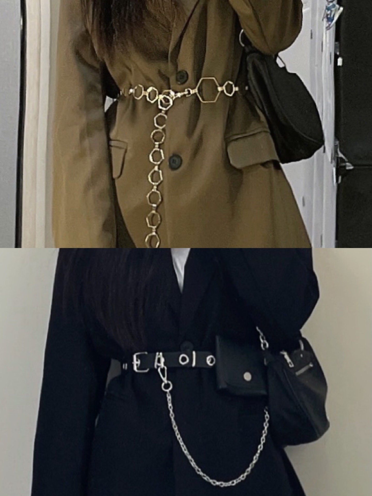 而且搭配条腰带敲显腰身 气质又显瘦拿捏了~