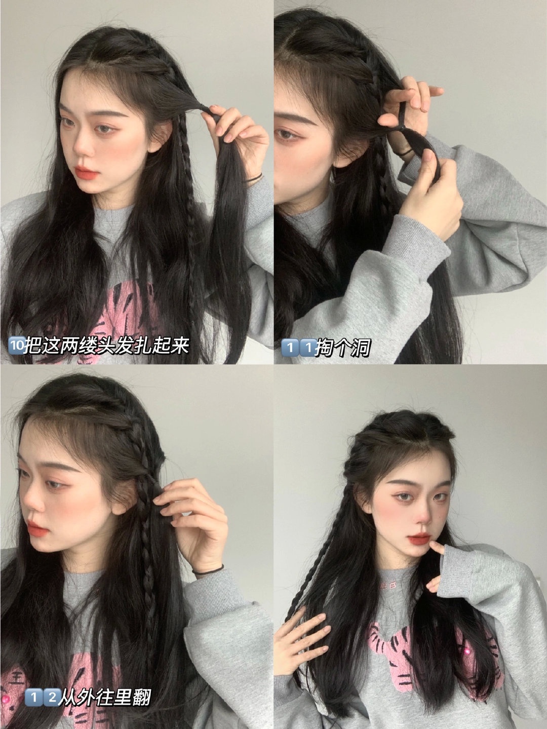 两个甜酷girl公主头编发教程|一看就会!!!!