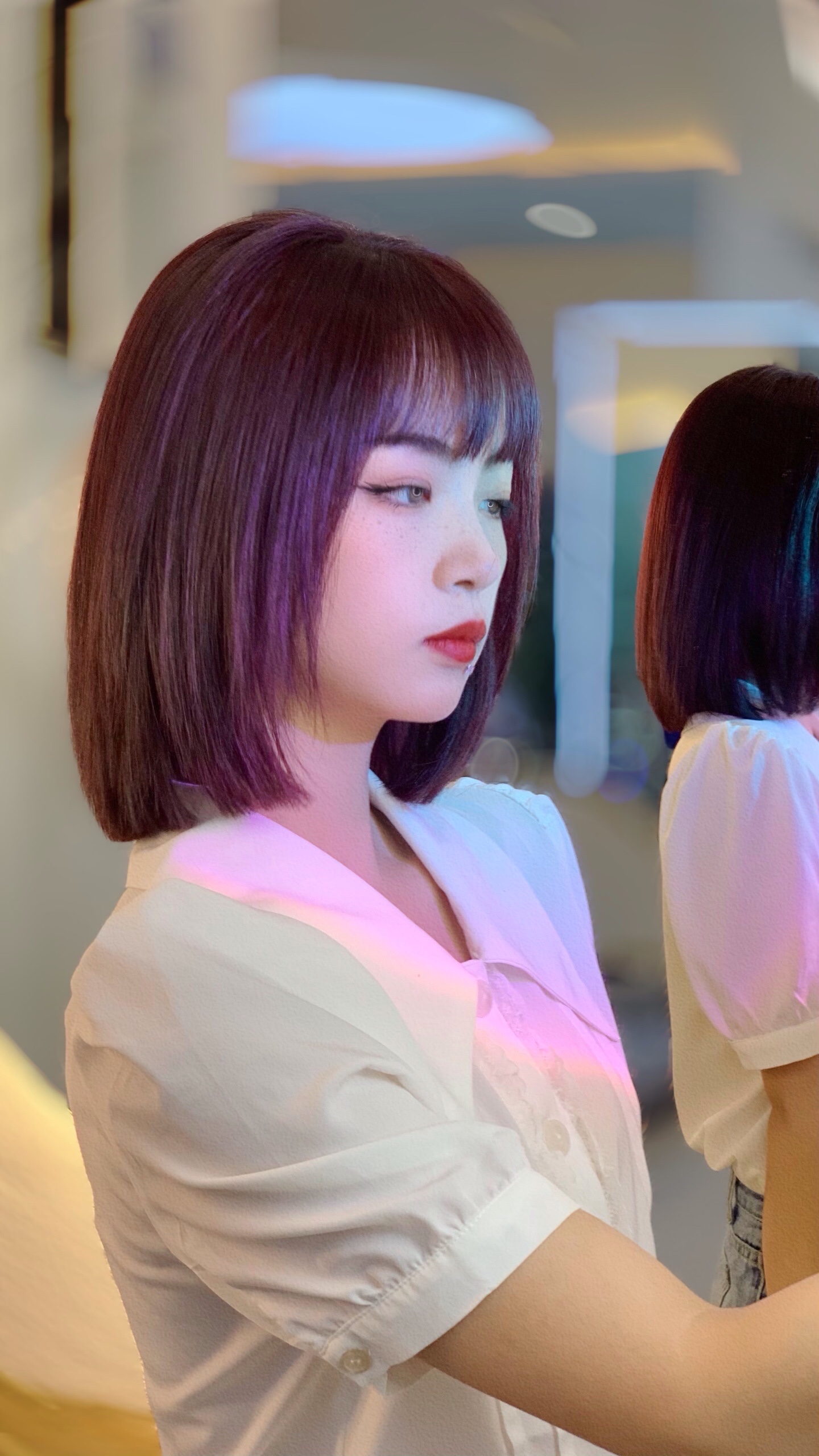 发,沙发自然卷也可以尝试,毛发矫正就可以了,整体质感突出,是发型感觉静中带动感,刘海是层次分明的小刘海。修饰脸型轮廓极好