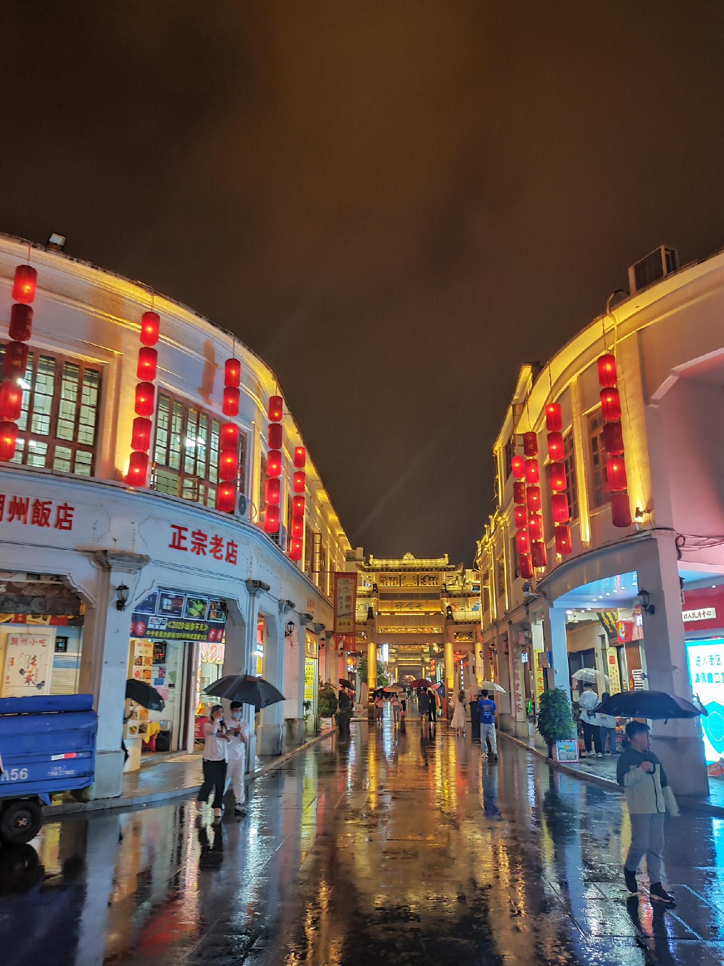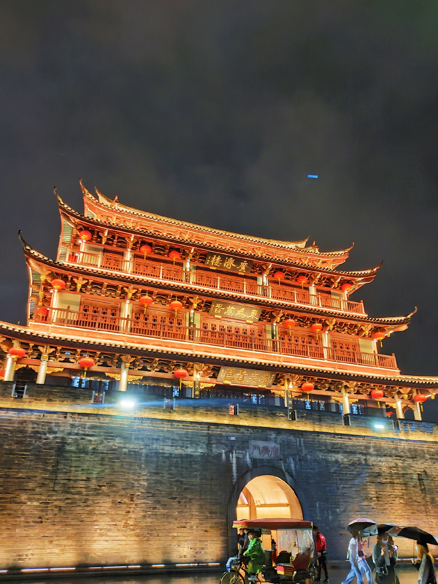 在牌坊街附近,有2000多米长的古城墙,以及4座古城楼。其中的广济门城楼,已有600多年历史,是原潮州古城七门中最巍峨壮观的一座,也是潮州名城的主要标志。夜晚点亮灯火,整个楼宇更是璀璨又宏伟。