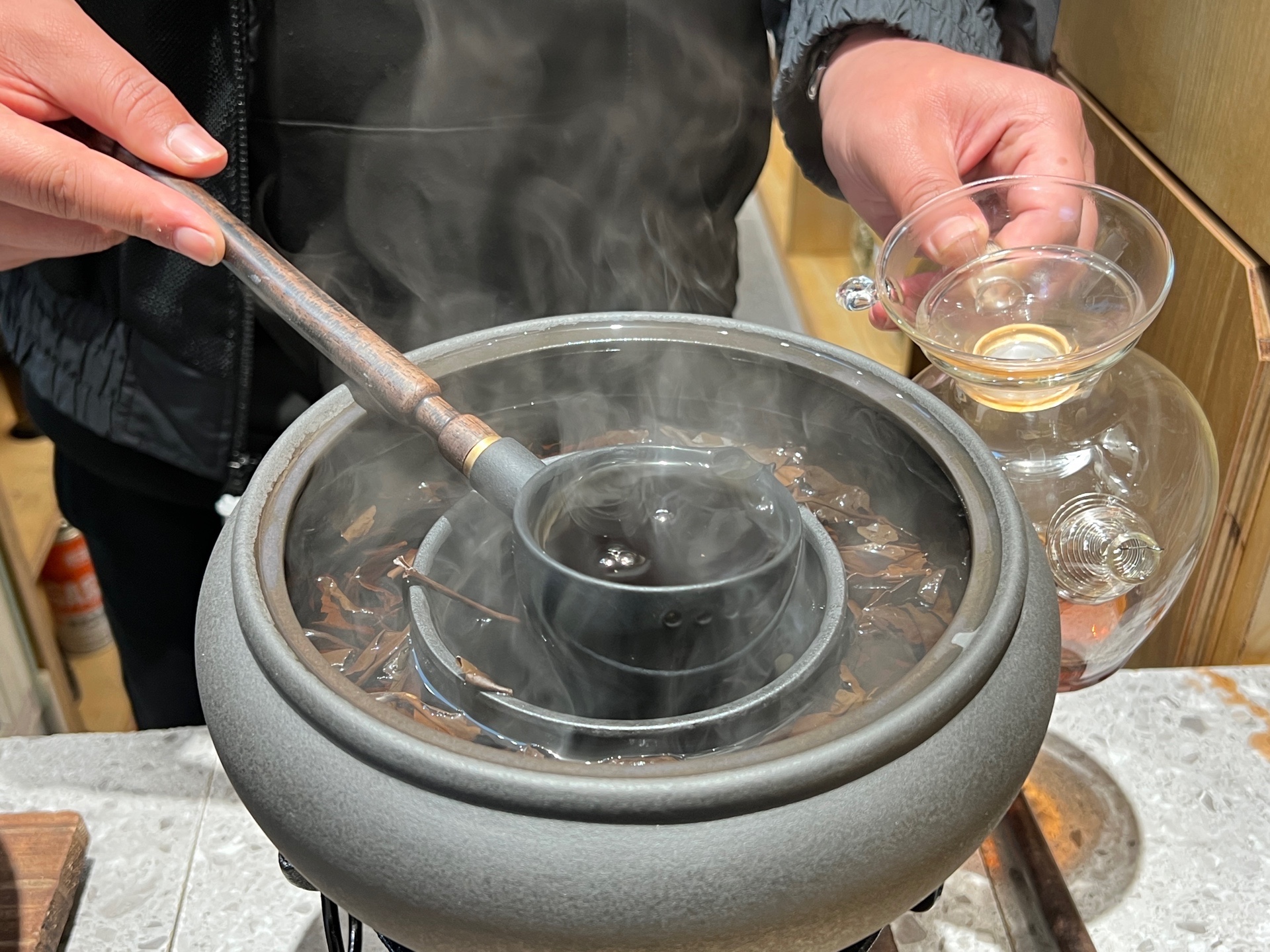 看茶师现场冲茶