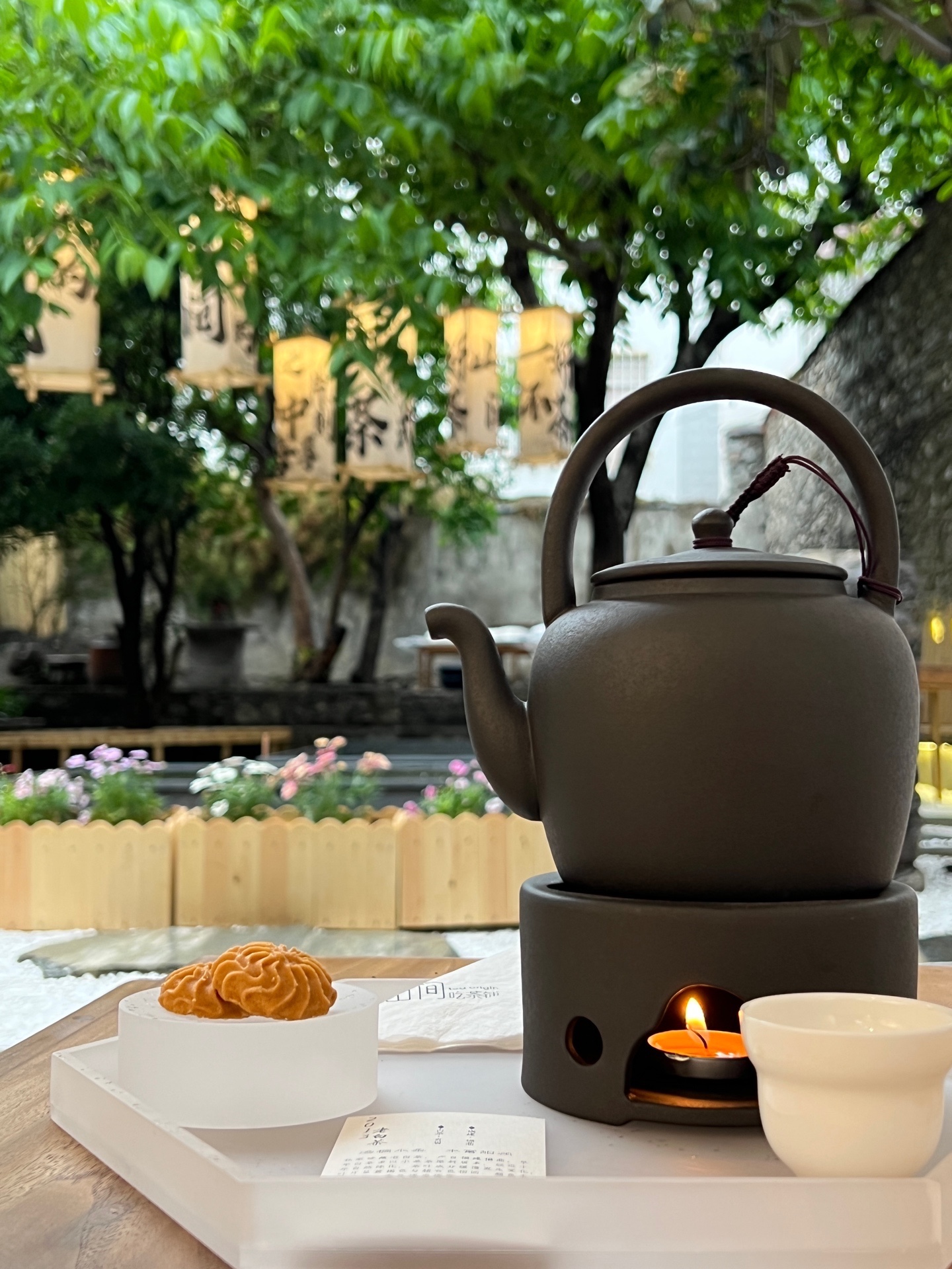 2️⃣0️⃣1️⃣3️⃣老白茶:带点禅意的茶壶 🫖点着酥油灯🪔口感甘甜带一点中药味,还有精致的小点心🍪。悠哉悠哉的度过茶余饭后。