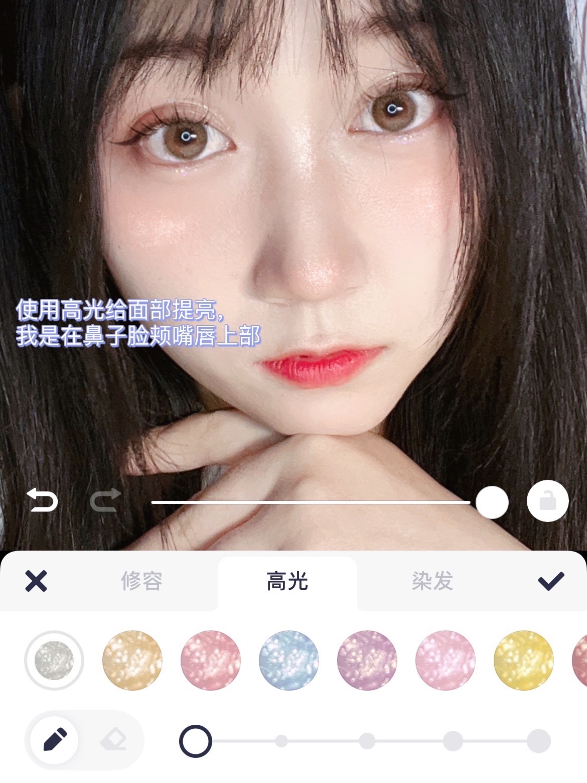 🌷使用高光给面部暗沉的部分进行提亮,可以让整个脸更加立体。
