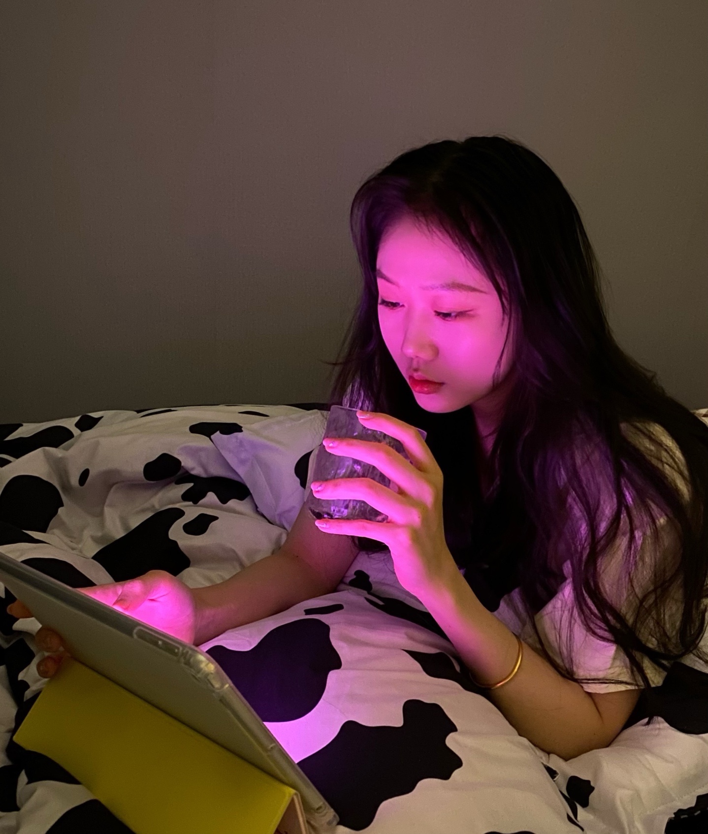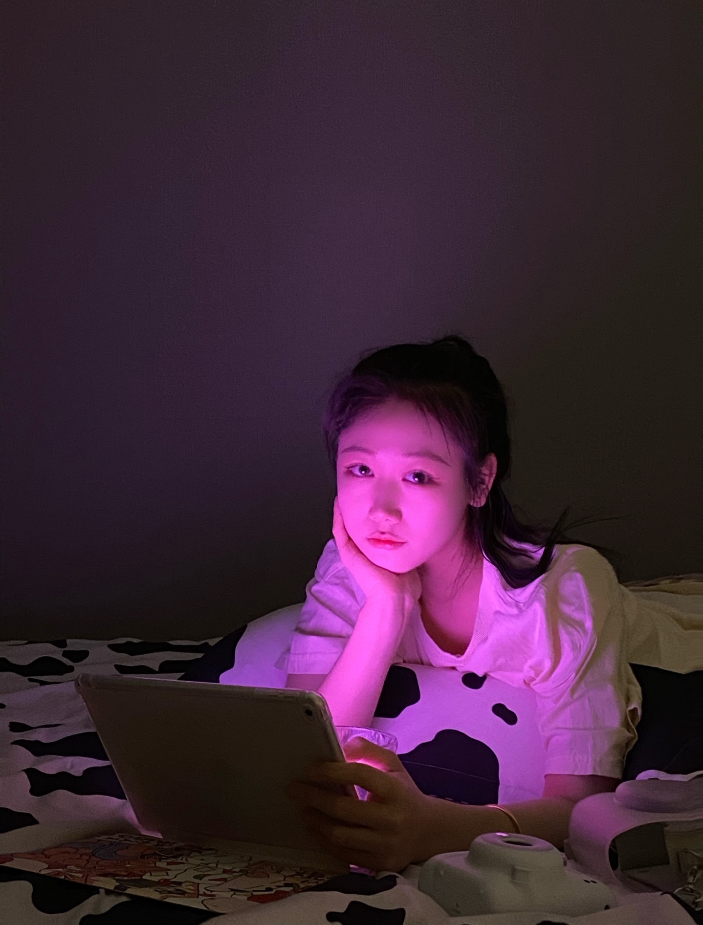 1️⃣把房间灯关上,把台灯、电脑或者iPad 和人放在一条直线上