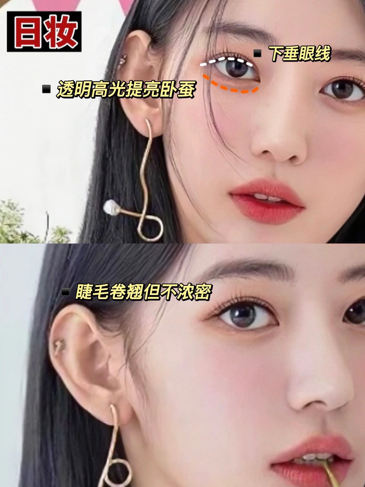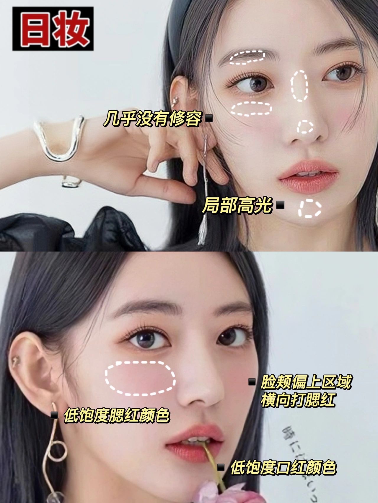 🔥日妆追求清透干净,妆容一般上(眉眼)轻下(腮红口红)重