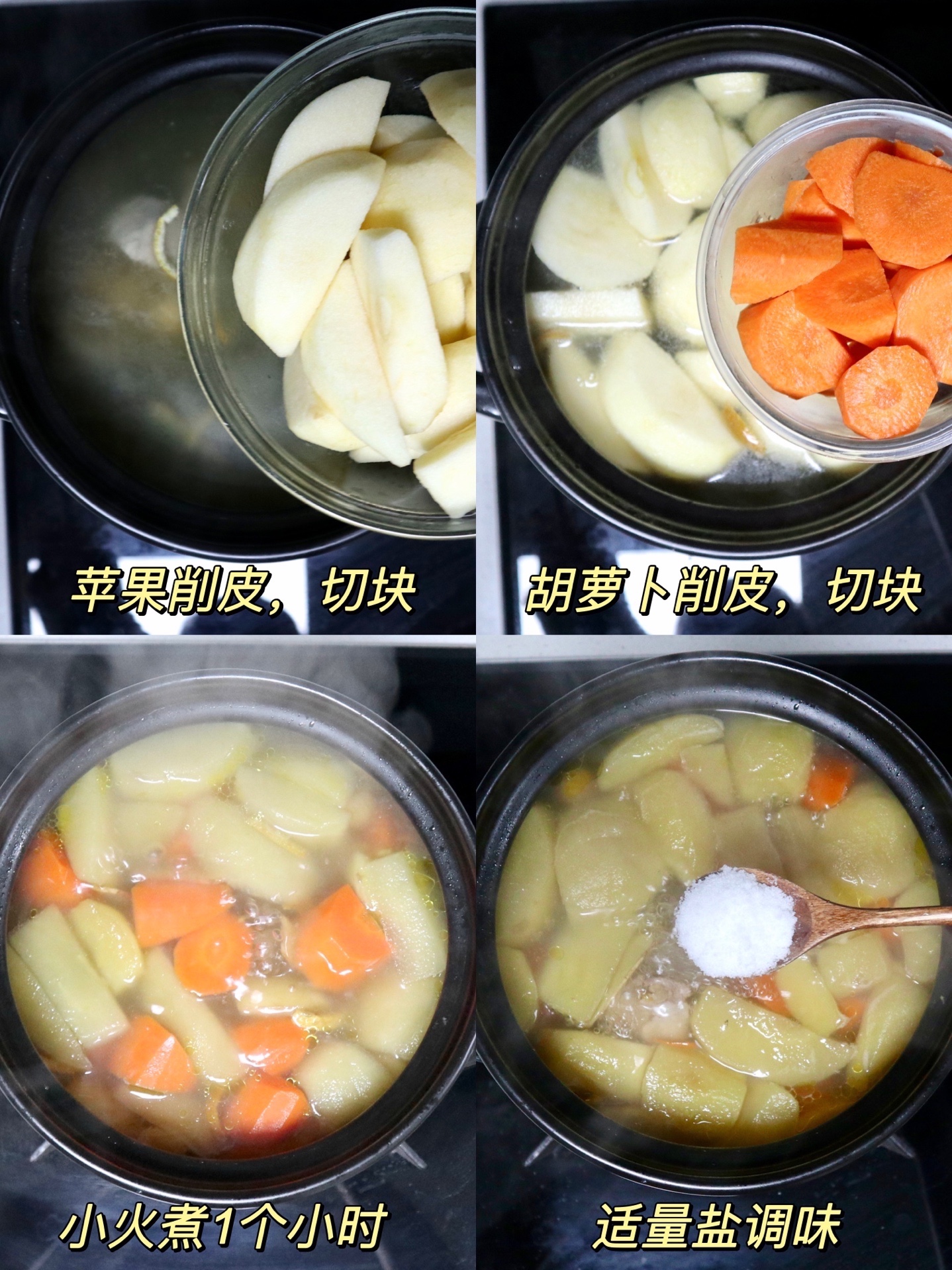 4⃣️、放入胡萝卜、苹果,小火煮1个小时。