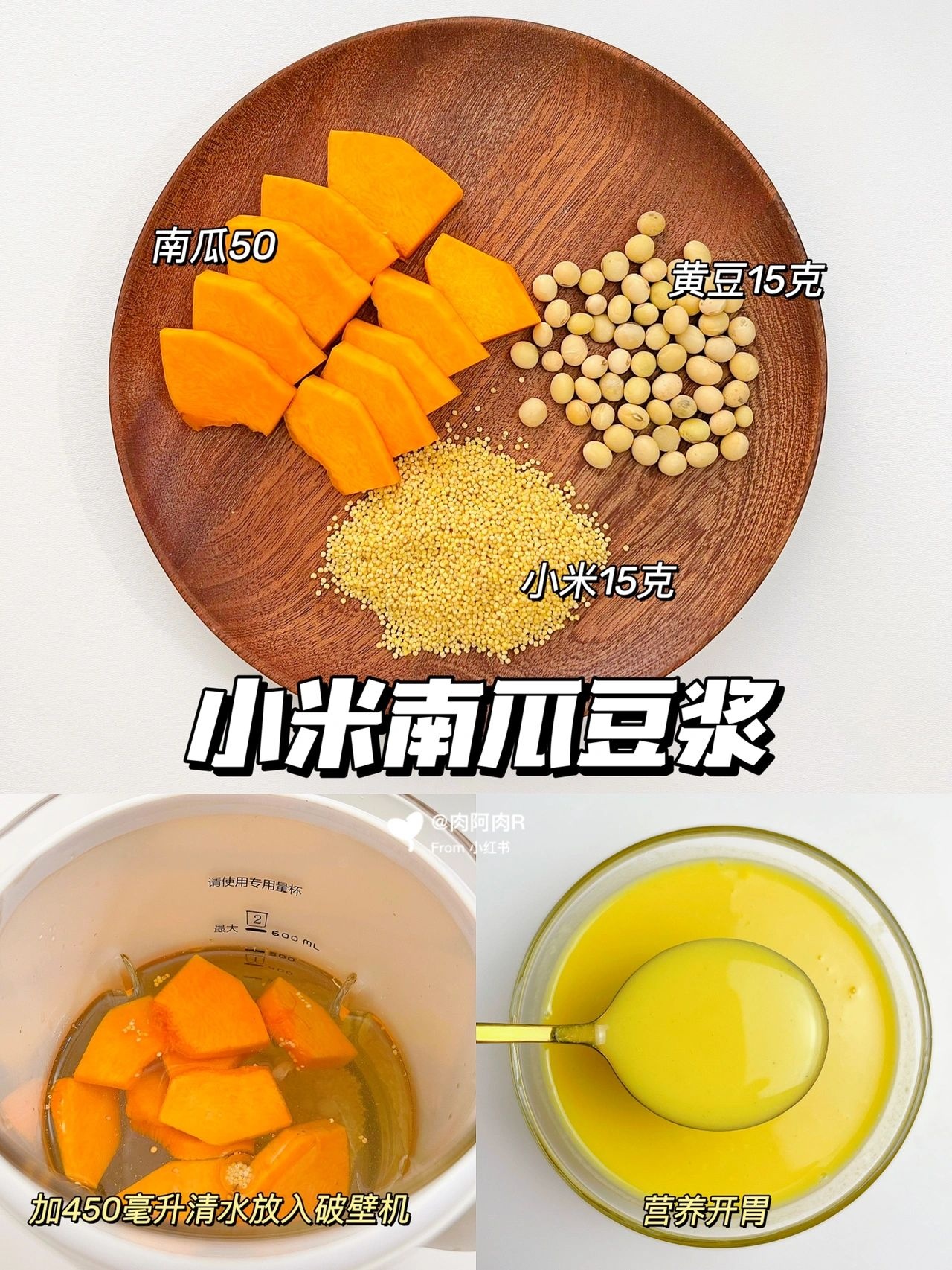 📝 南瓜50克,黄豆15克,小米15克