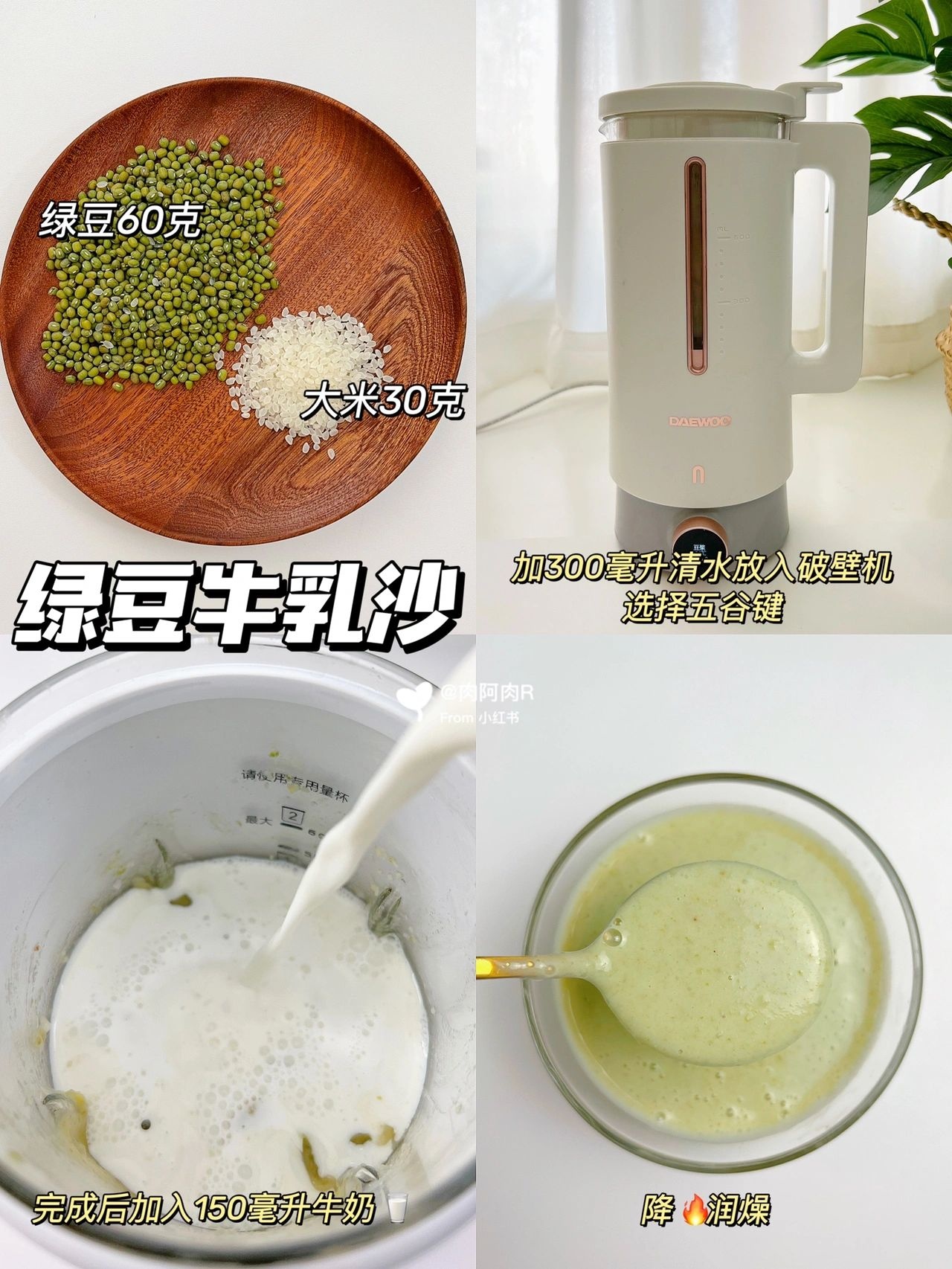 📝 绿豆60克,大米30克,水300毫升,奶160毫升