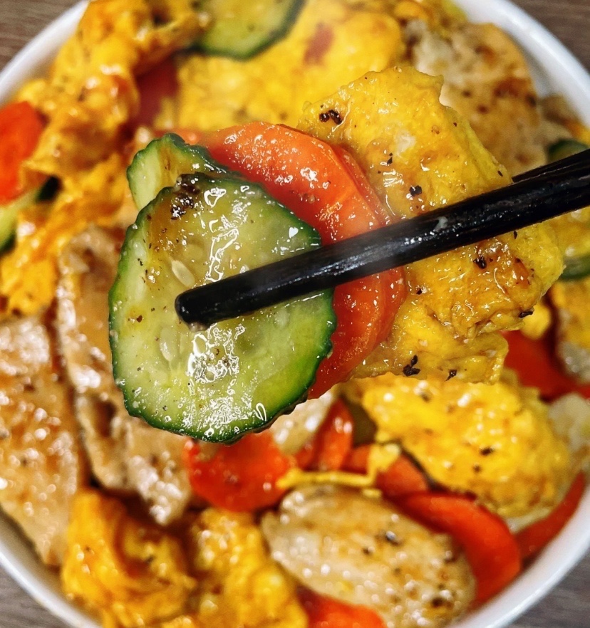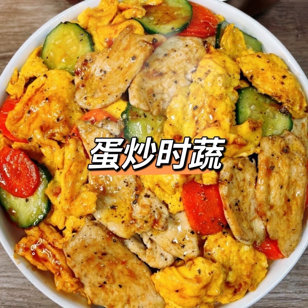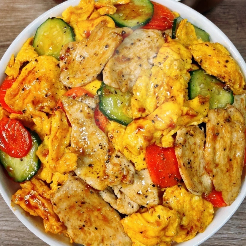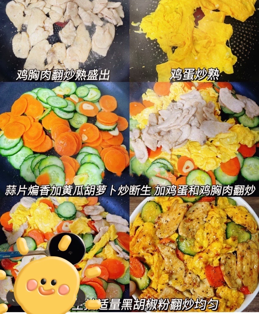 4⃣️加入鸡胸肉鸡蛋炒就OK了