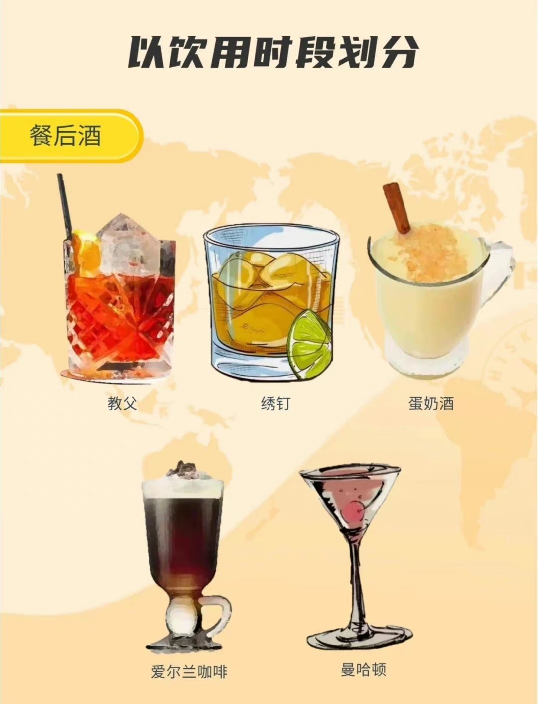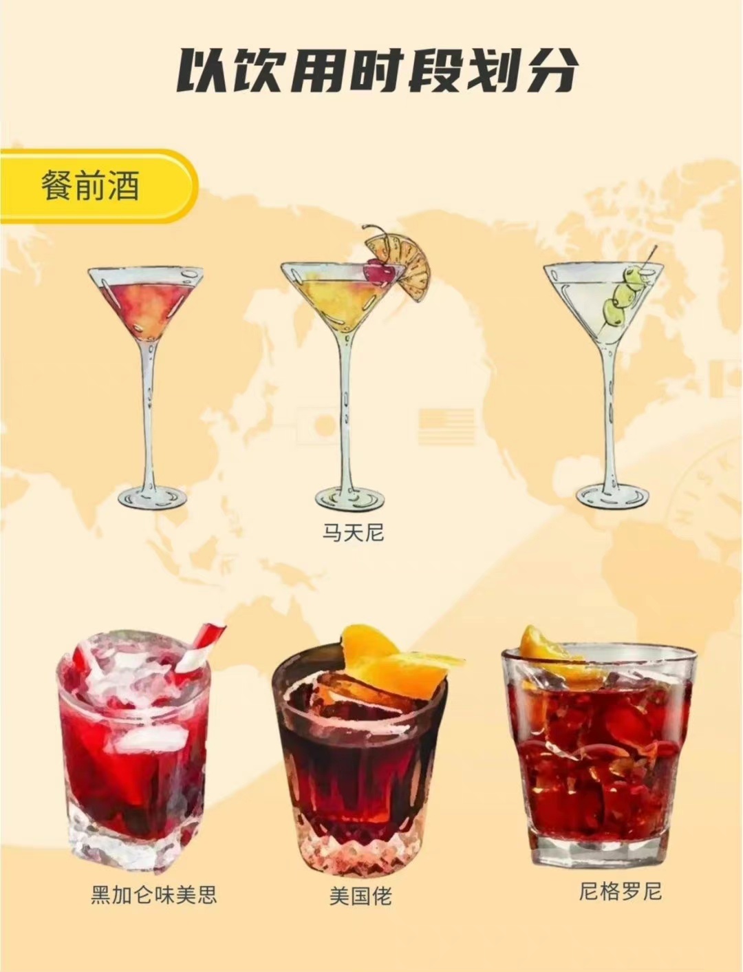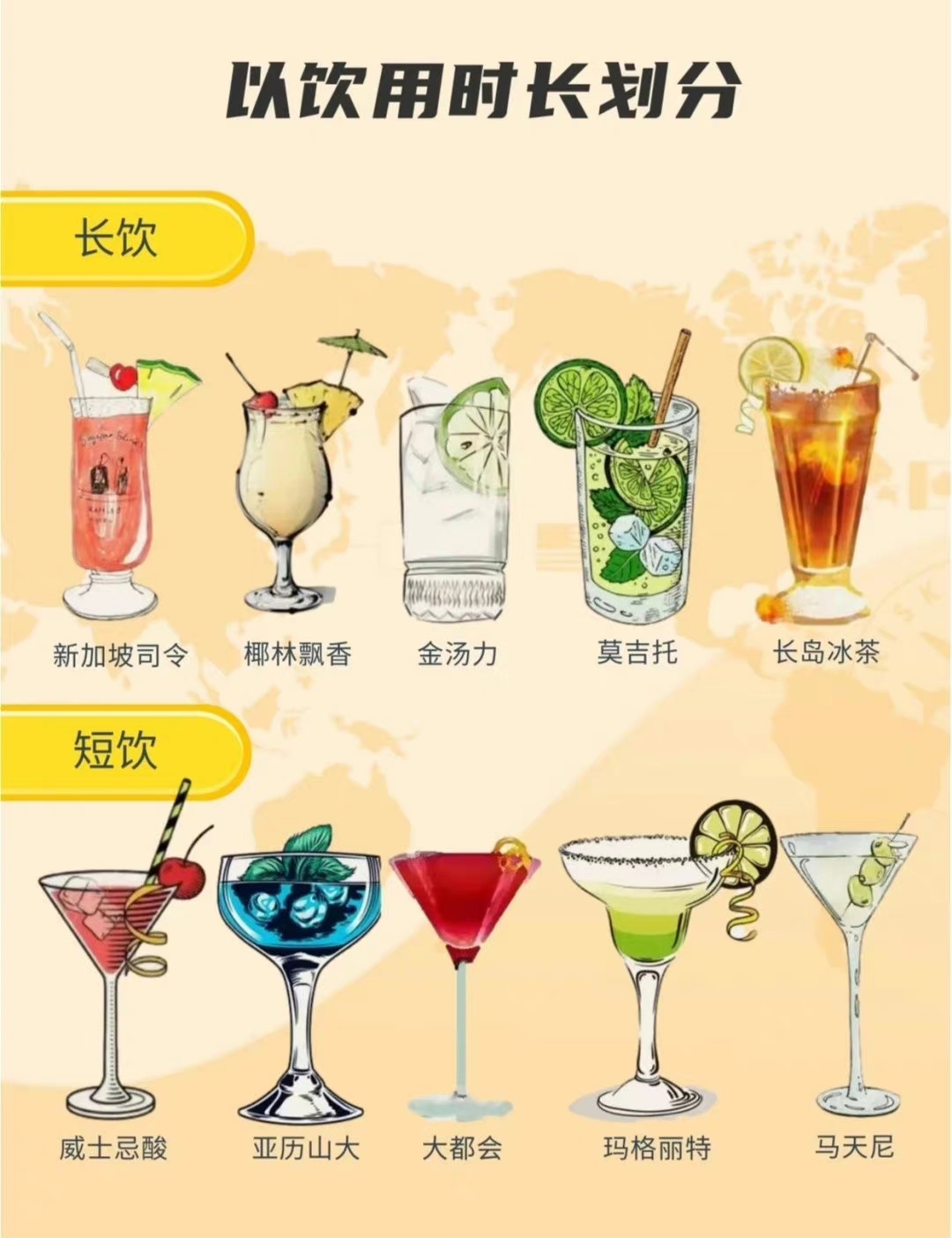 为了方便理解,我们可以把鸡尾酒按照饮用时长或饮用时间段做区分。