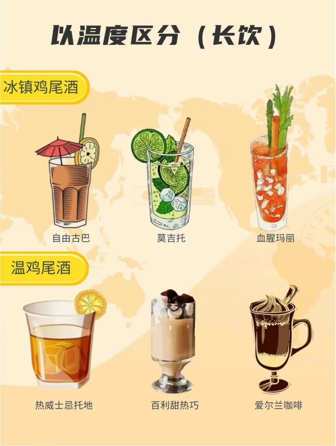 [星星]另外长饮鸡尾酒还可根据温度分冰镇鸡尾酒和温鸡尾酒