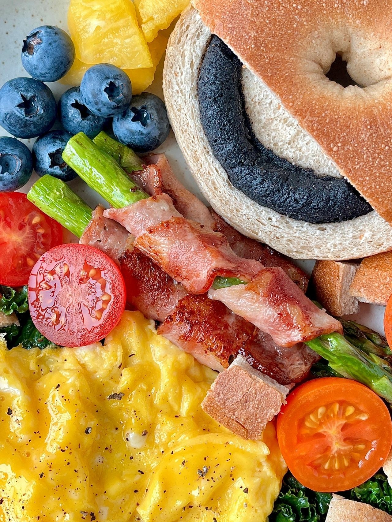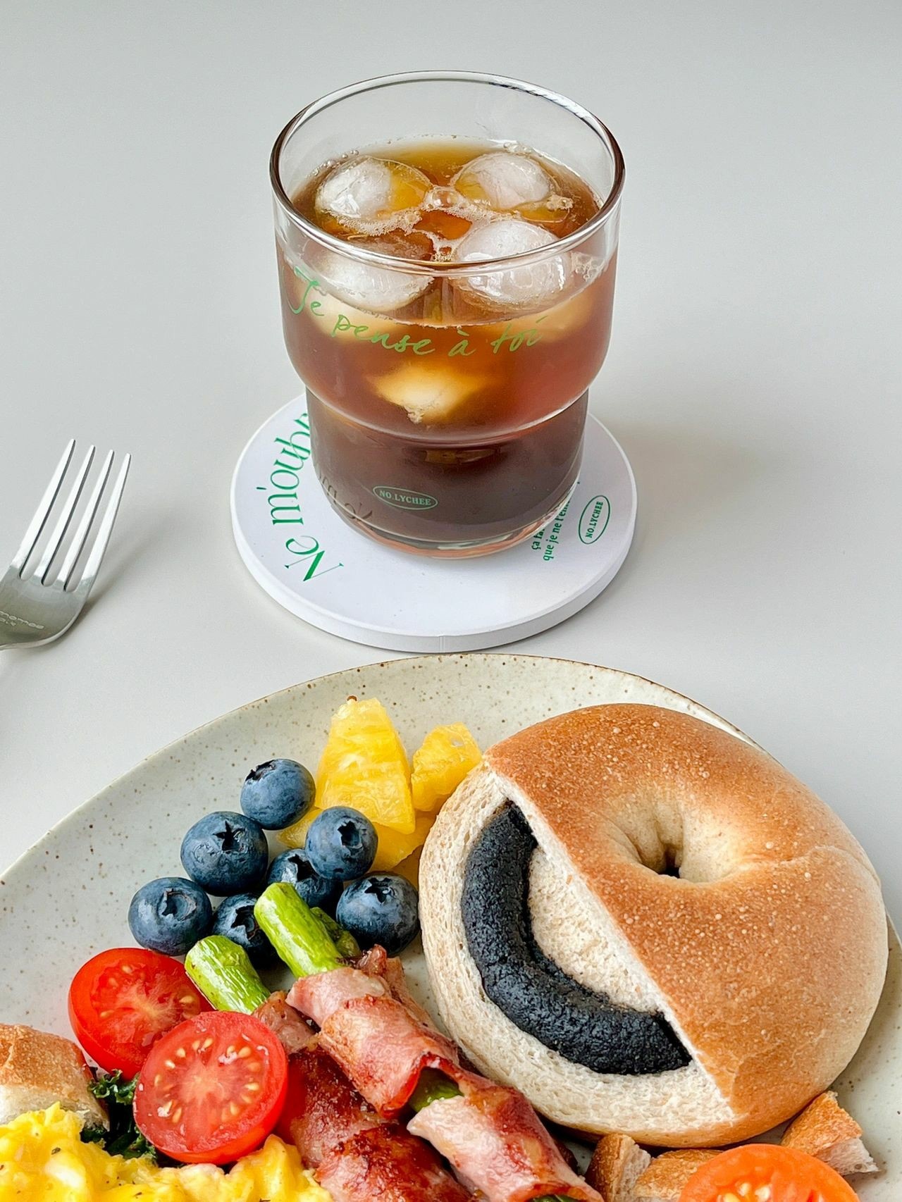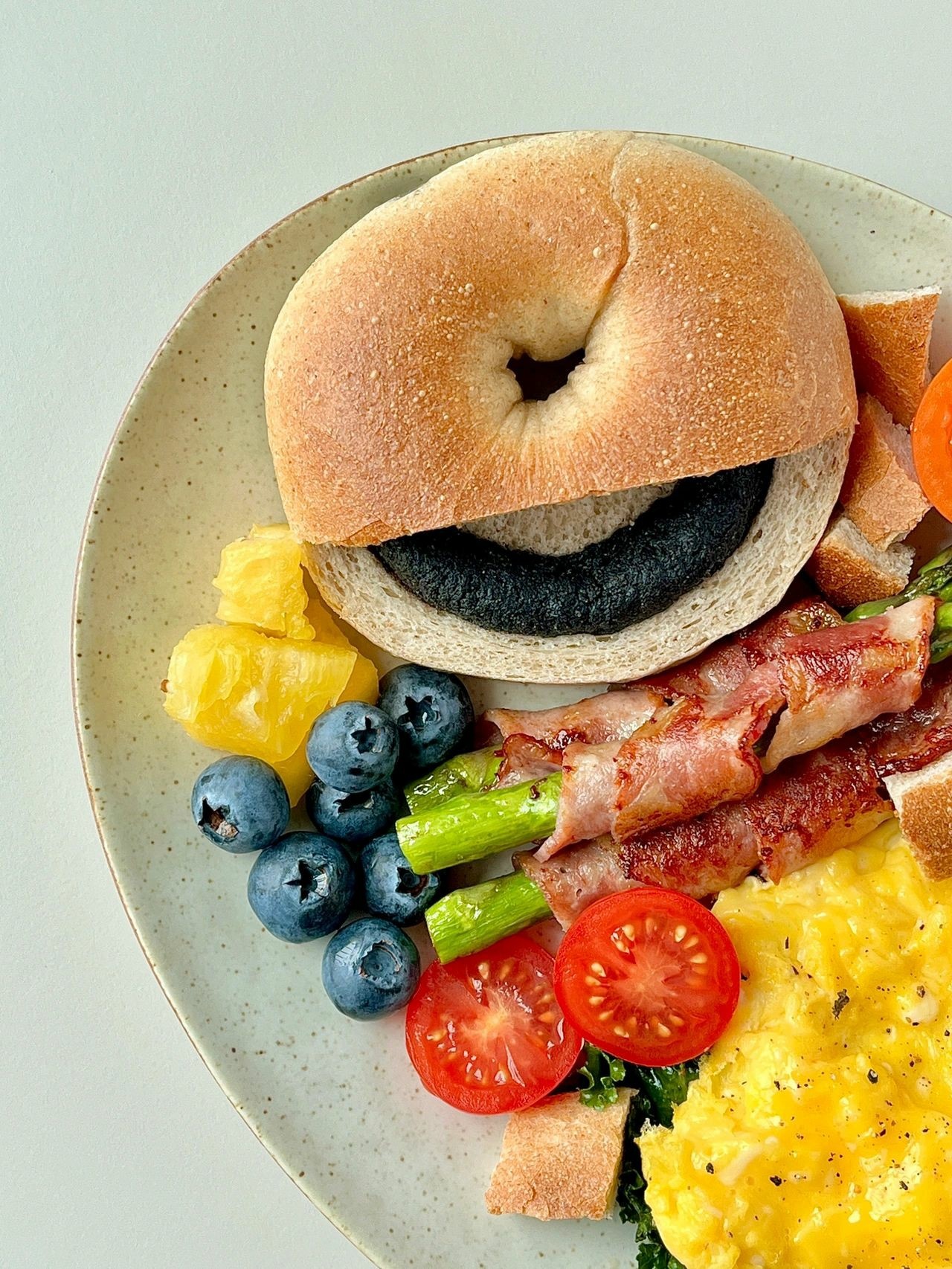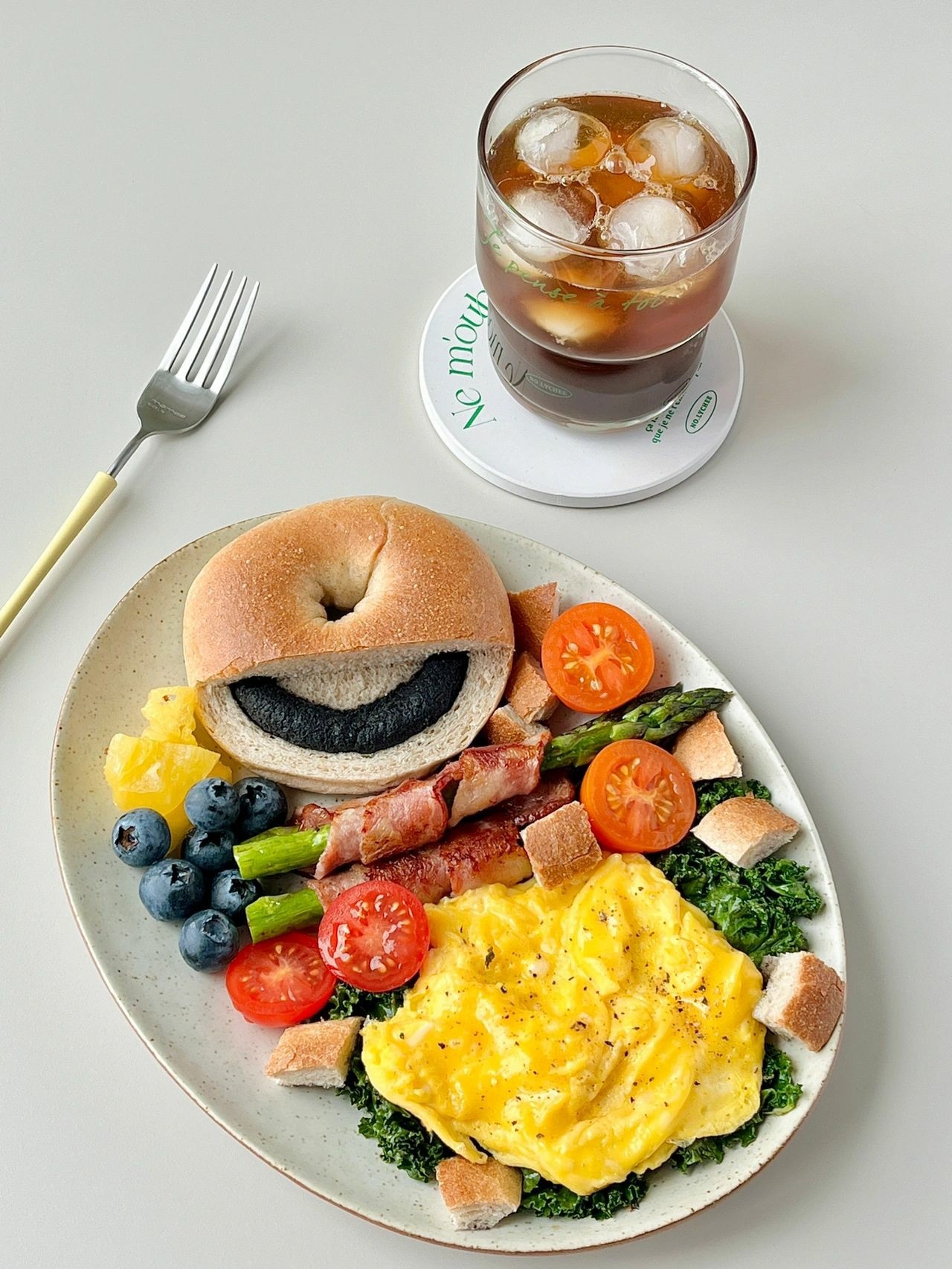 黑芝麻贝果早餐盘+冰美式☕️🥓🍅
