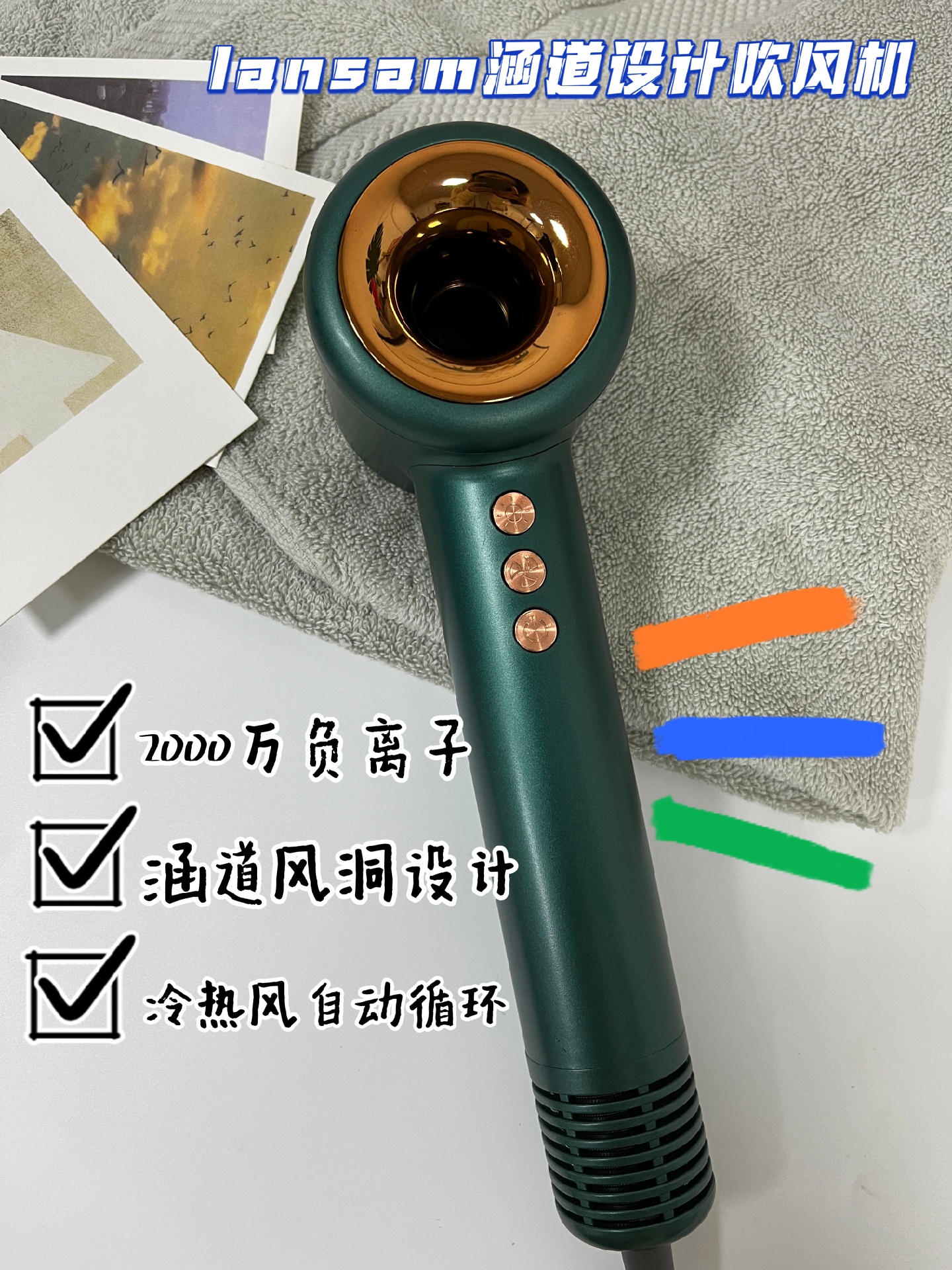 这款lansam吹风机是有2000万的负离子,能有效减少头中的静电,驯服毛躁,能令秀发光泽顺滑;涵道风洞的设计使吹风机吹出的气流放大4倍,能快速干发的同时还不会像传统吹风机那样只靠高温干发。