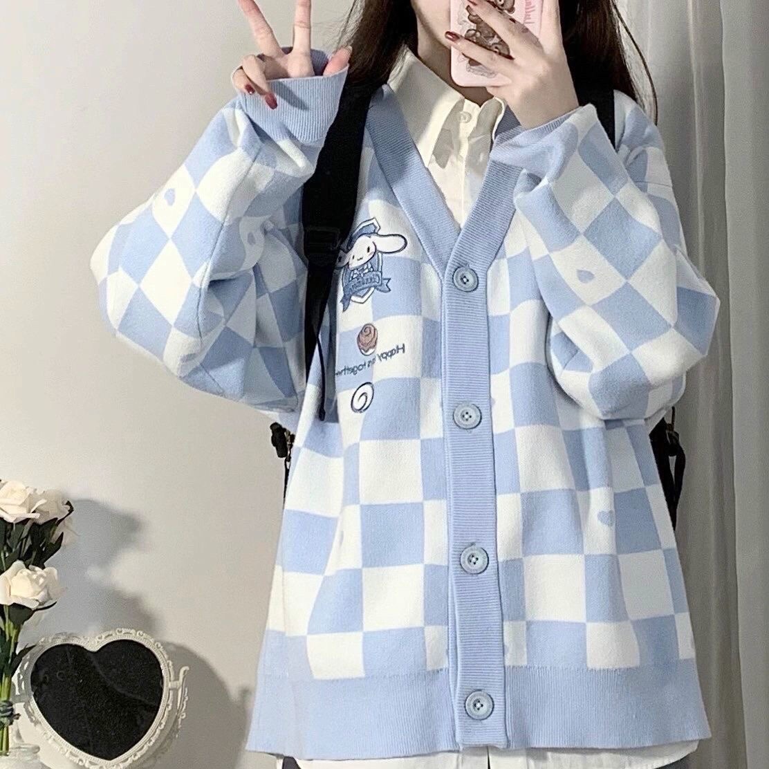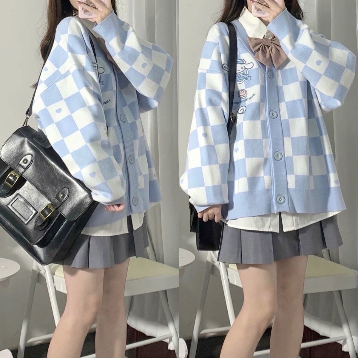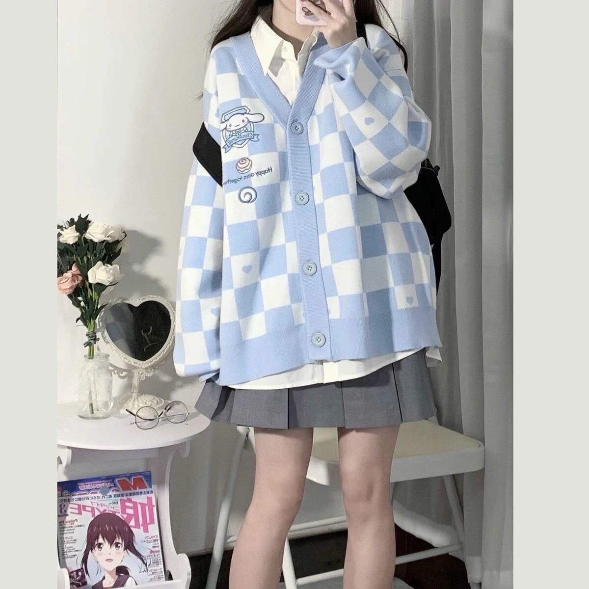 玉桂狗刺绣开衫毛衣女针织衫上衣百搭jk外套女开衫学院风校供感潮