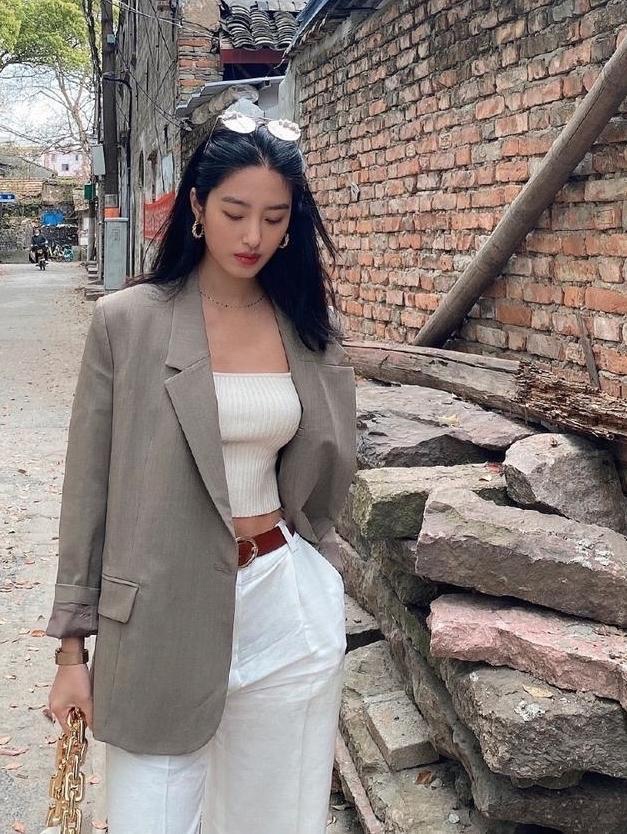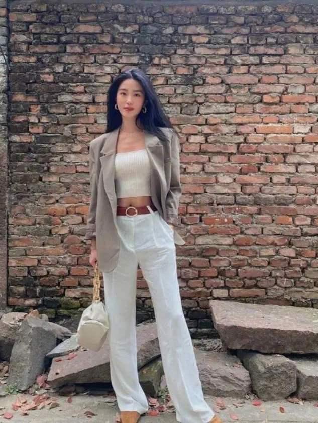 杨采钰真会穿,用“肚兜”来配西装,个性感十足,走到哪都很吸睛!这样的穿法有很多亮眼之处,首先值得一提的,就是这样的穿法其实大胆地打破了常规西装的搭配方式。在人们的印象里,西装一直是一种严肃正式的服装,但这种穿法,却恰恰是随性又休闲的,亮眼且时髦。