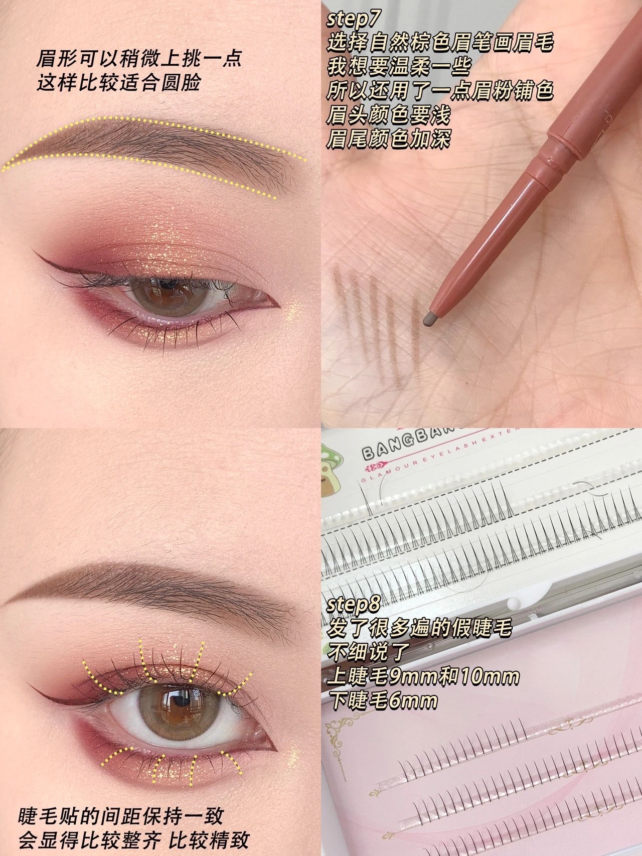 4️⃣睫毛部分是我用了很多次的假睫毛组合,保证每根睫毛间距都一样,看起来就会比较精致了