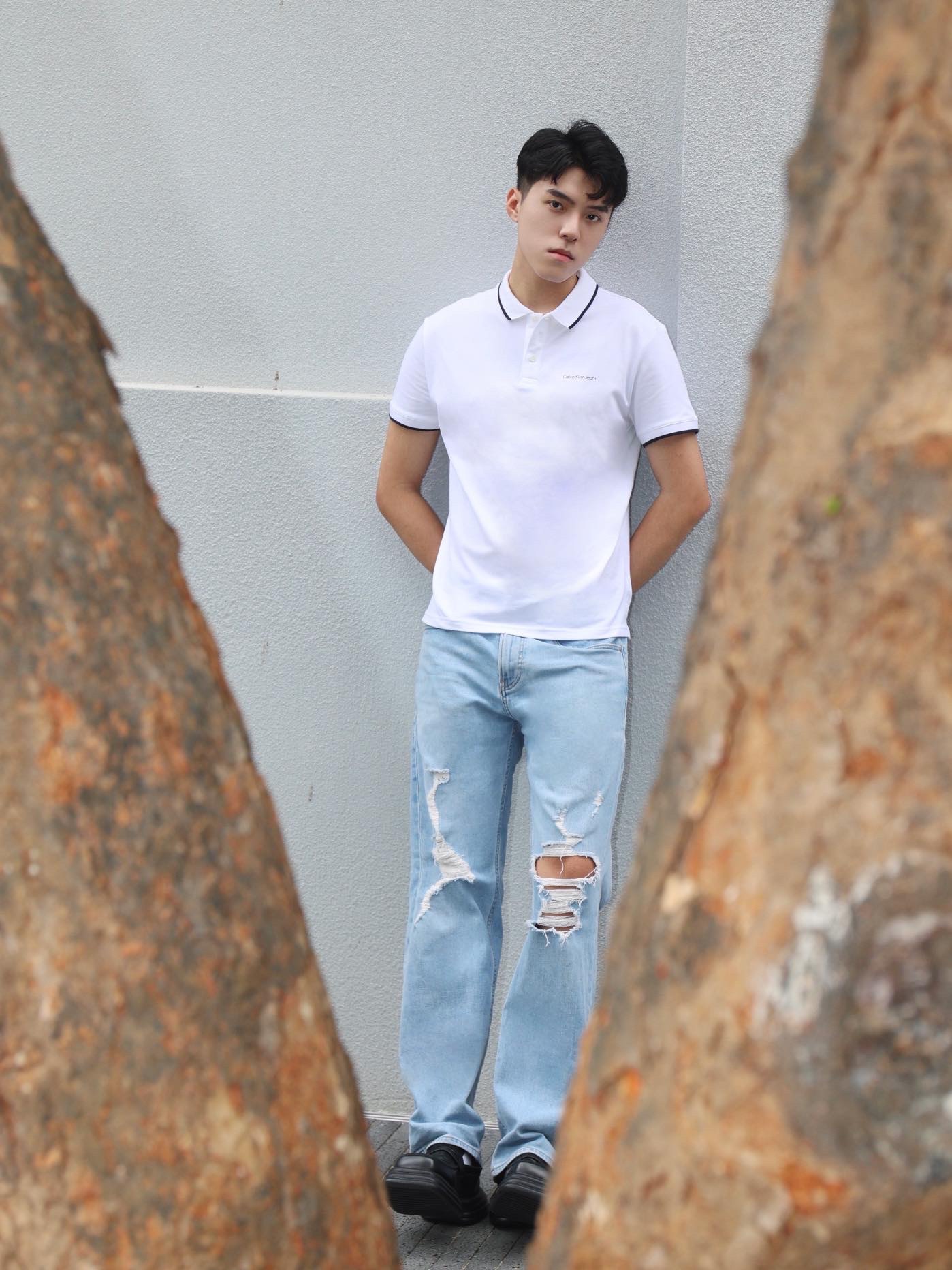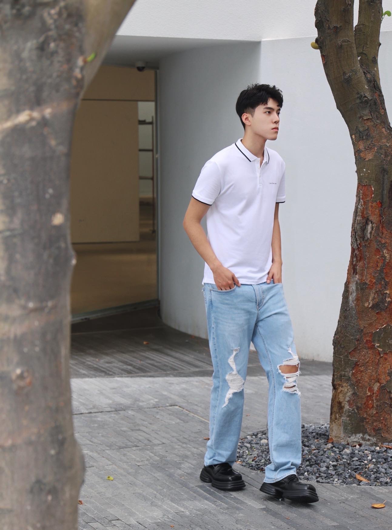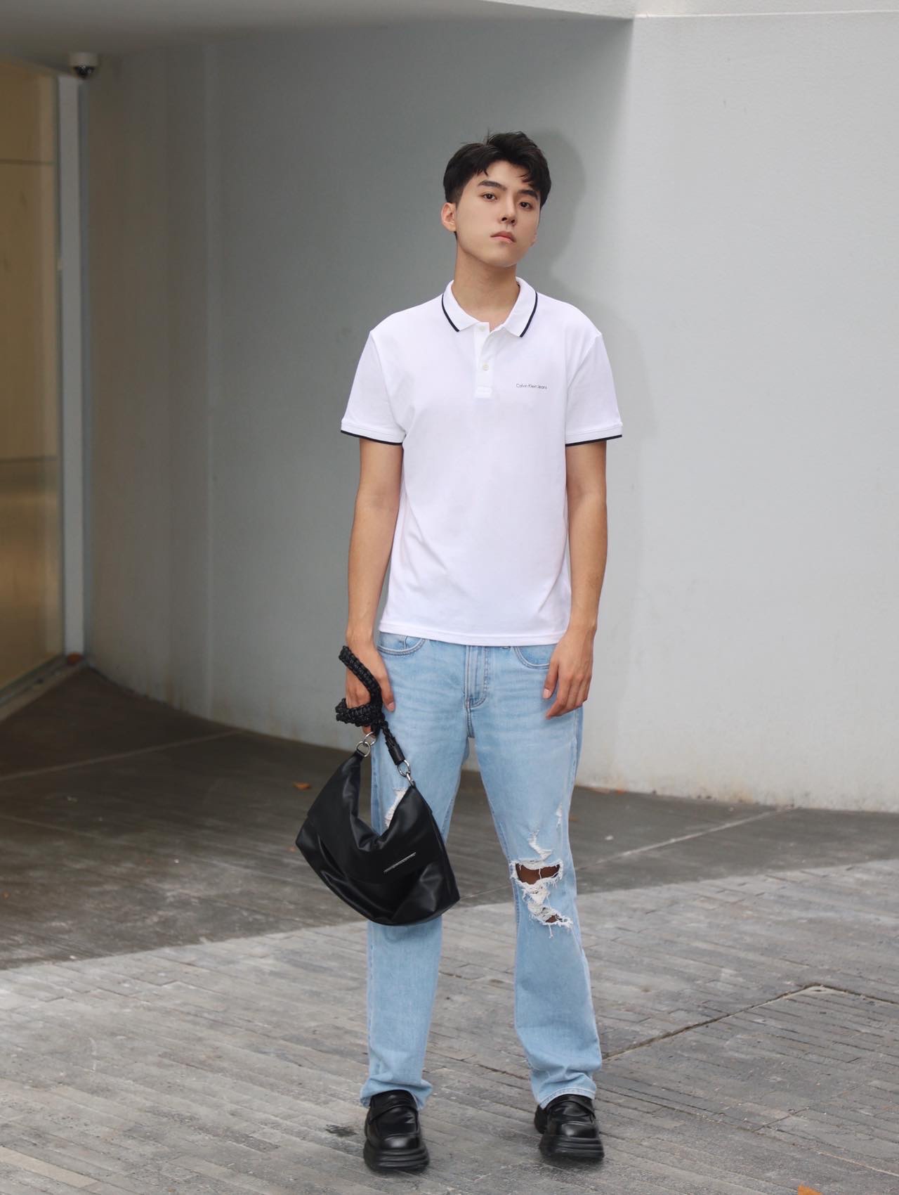 一件简简单单的白色polo搭配一件浅色牛仔裤就能阐释