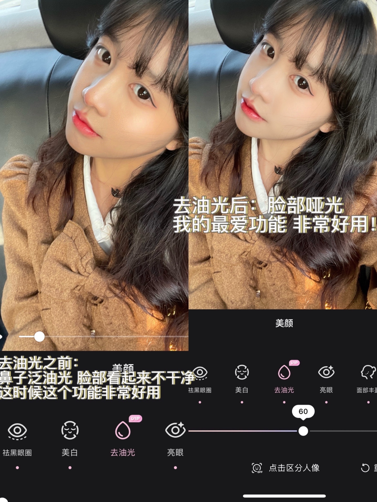 2⃣️个人认为很好用的一个功能 去油光 皮肤直接哑光