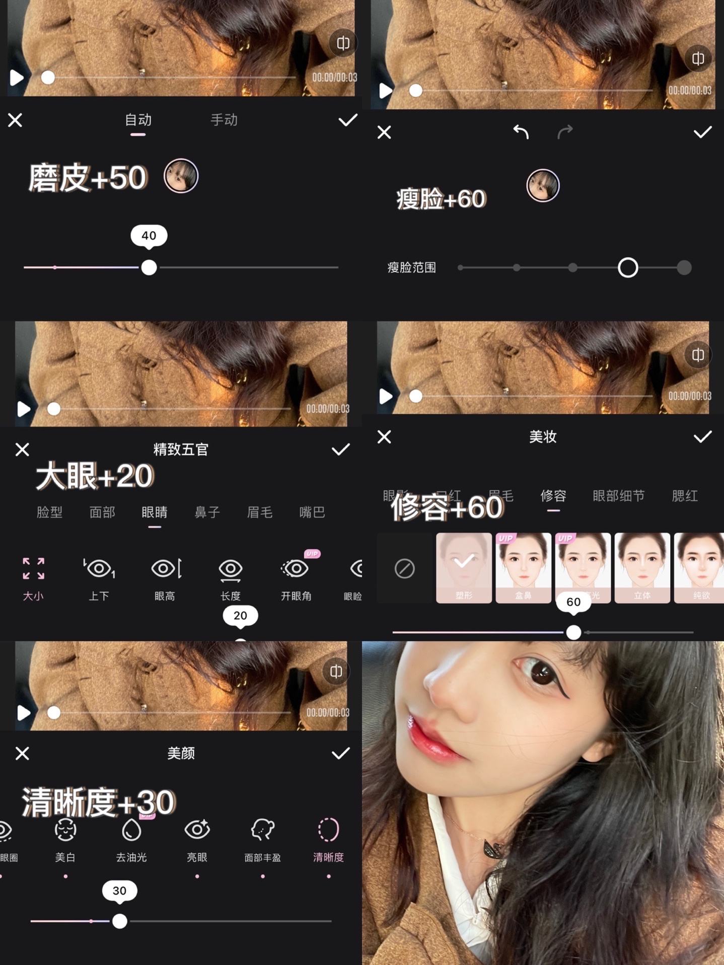1⃣️如图调整脸型 可以按参数也可以按自己的脸型修饰