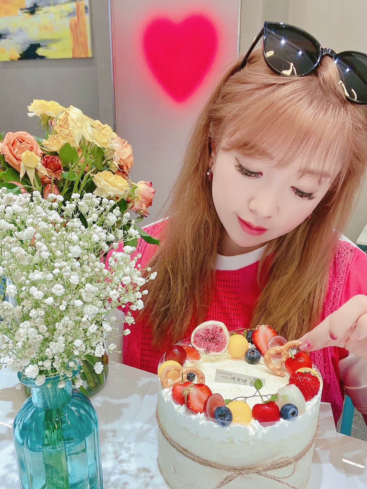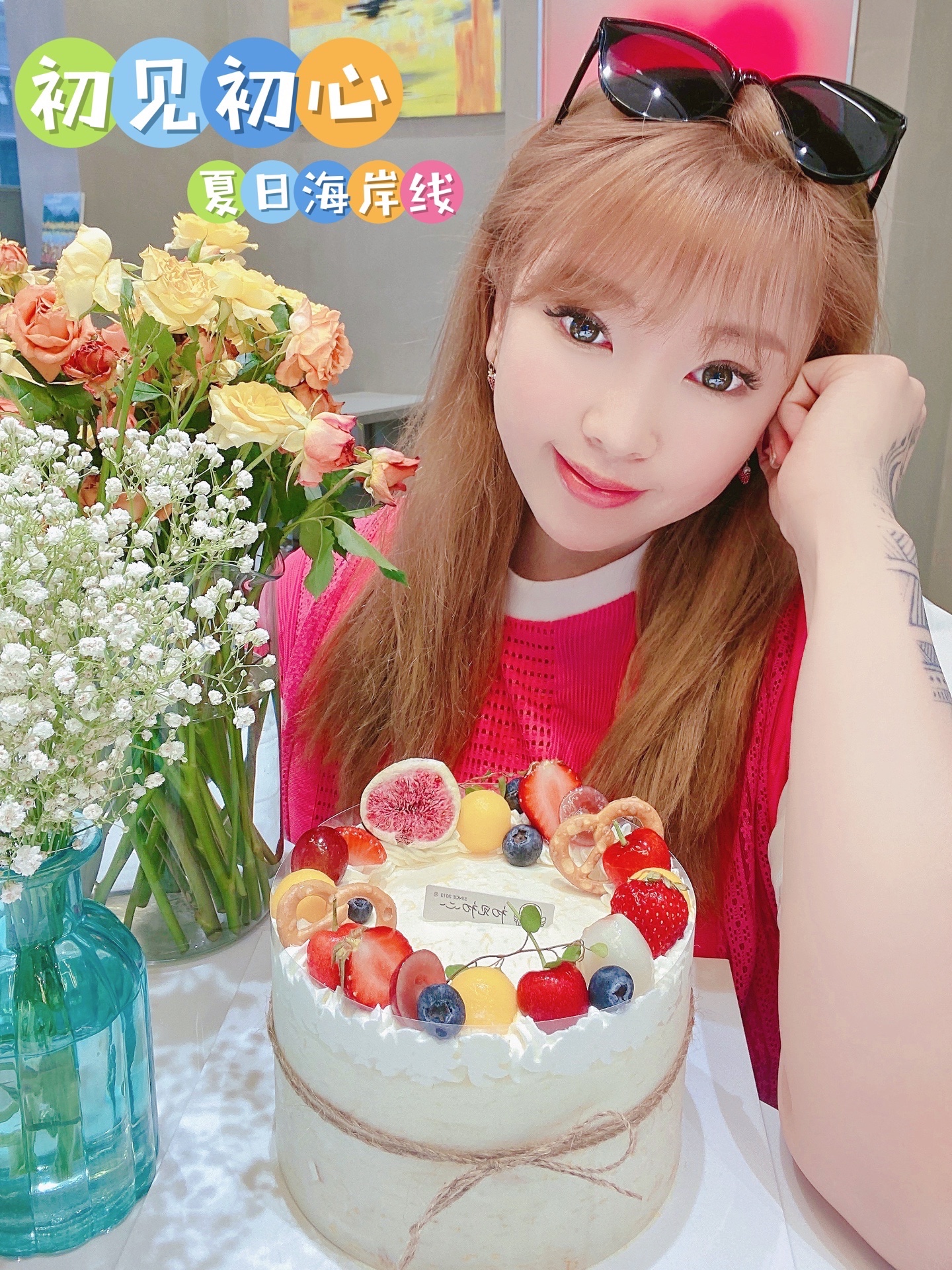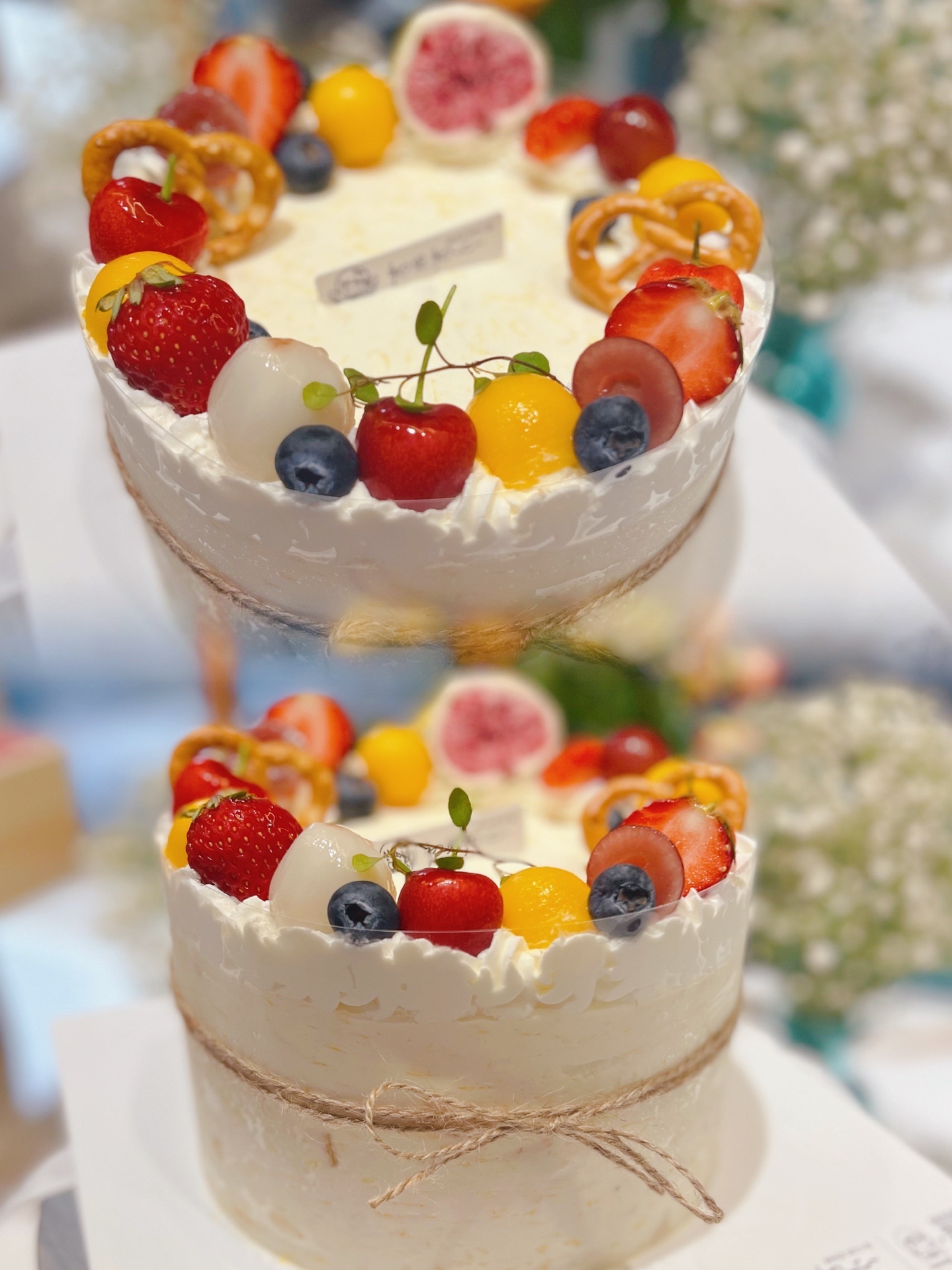 组成的“花环”落在蛋糕上,