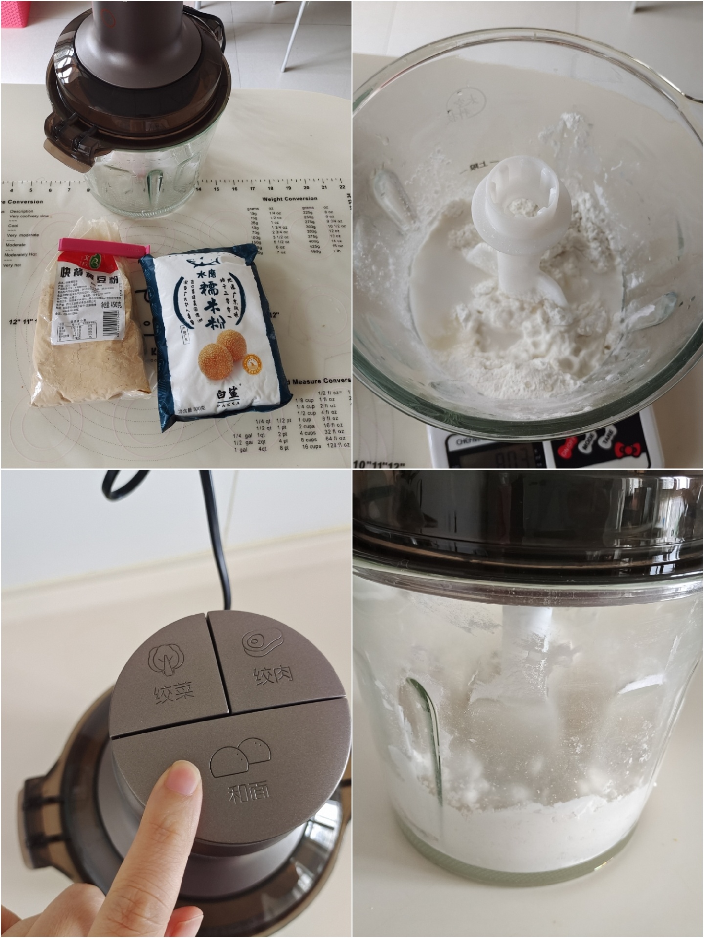 2,面团材料放入九阳饺子神器pro中,揉面。