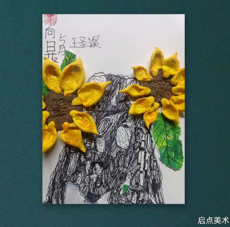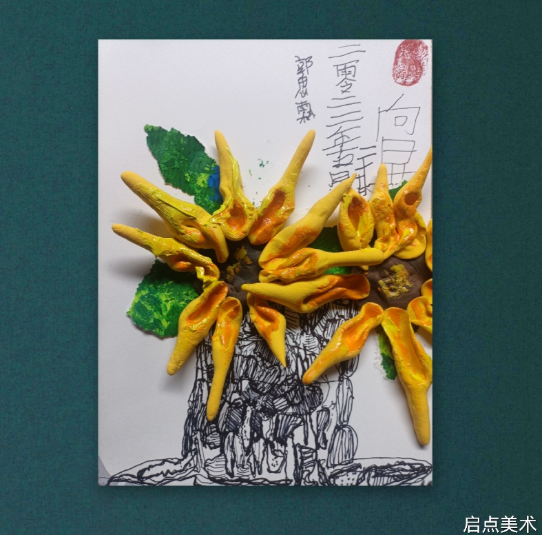 4.叶片的撕贴,葵花的花瓣粘土小技巧