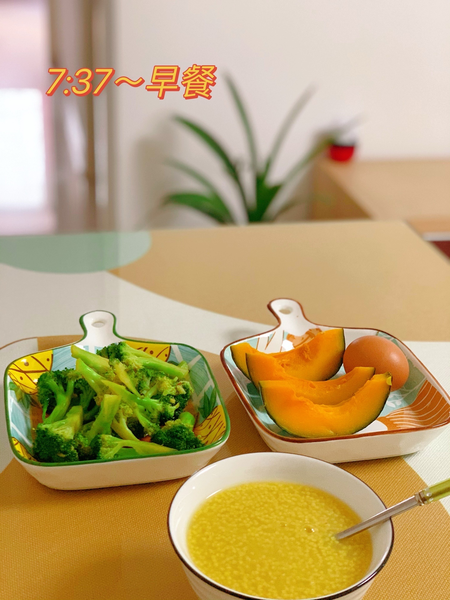 早餐 | 小米粥+蒸南瓜+煮鸡蛋+拌西蓝花