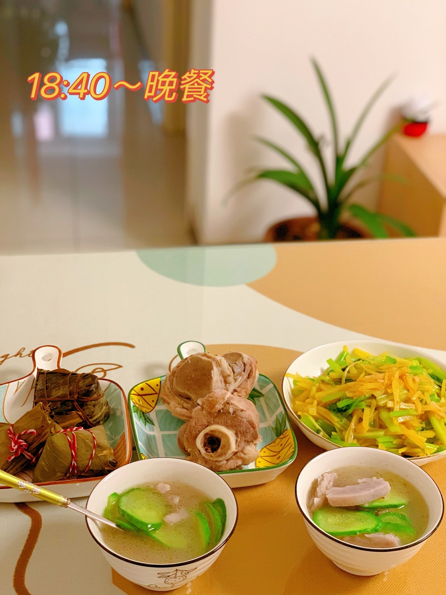 晚餐 | 粽子+大棒骨+芹菜土豆丝+芋头瓜片骨汤