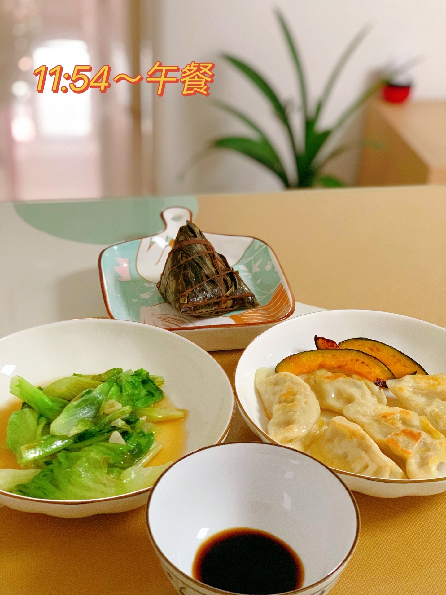 午餐 | 煎饺+煎小南瓜+蚝油生菜(粽子没有吃下)