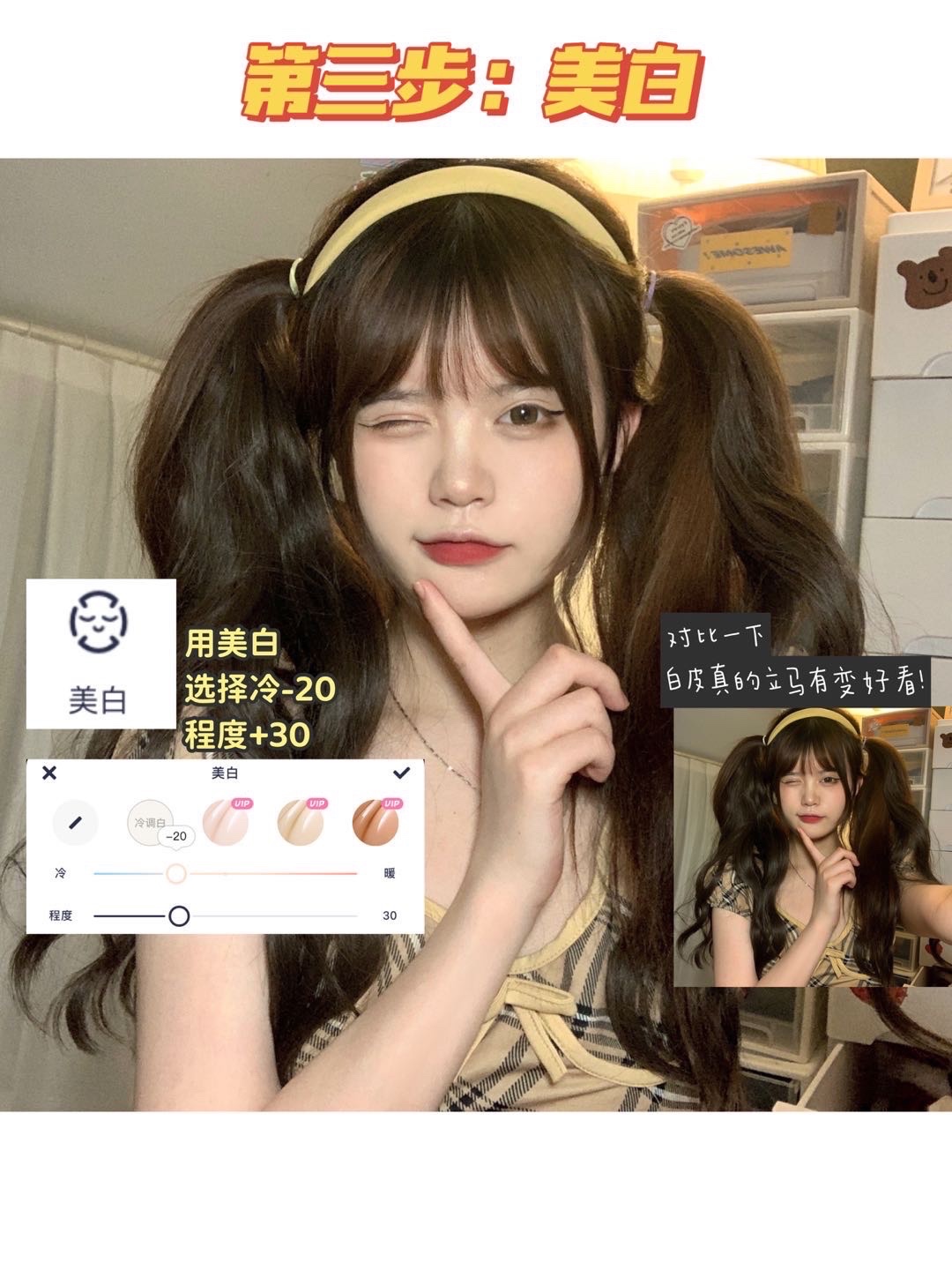 3️⃣美白:冷色调-20程度30皮肤就从暗沉黄皮变白皮啦