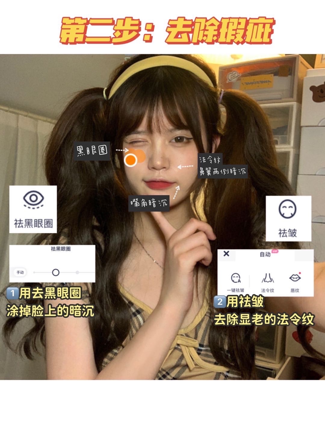 再用祛zhou笔去掉显老的法令纹