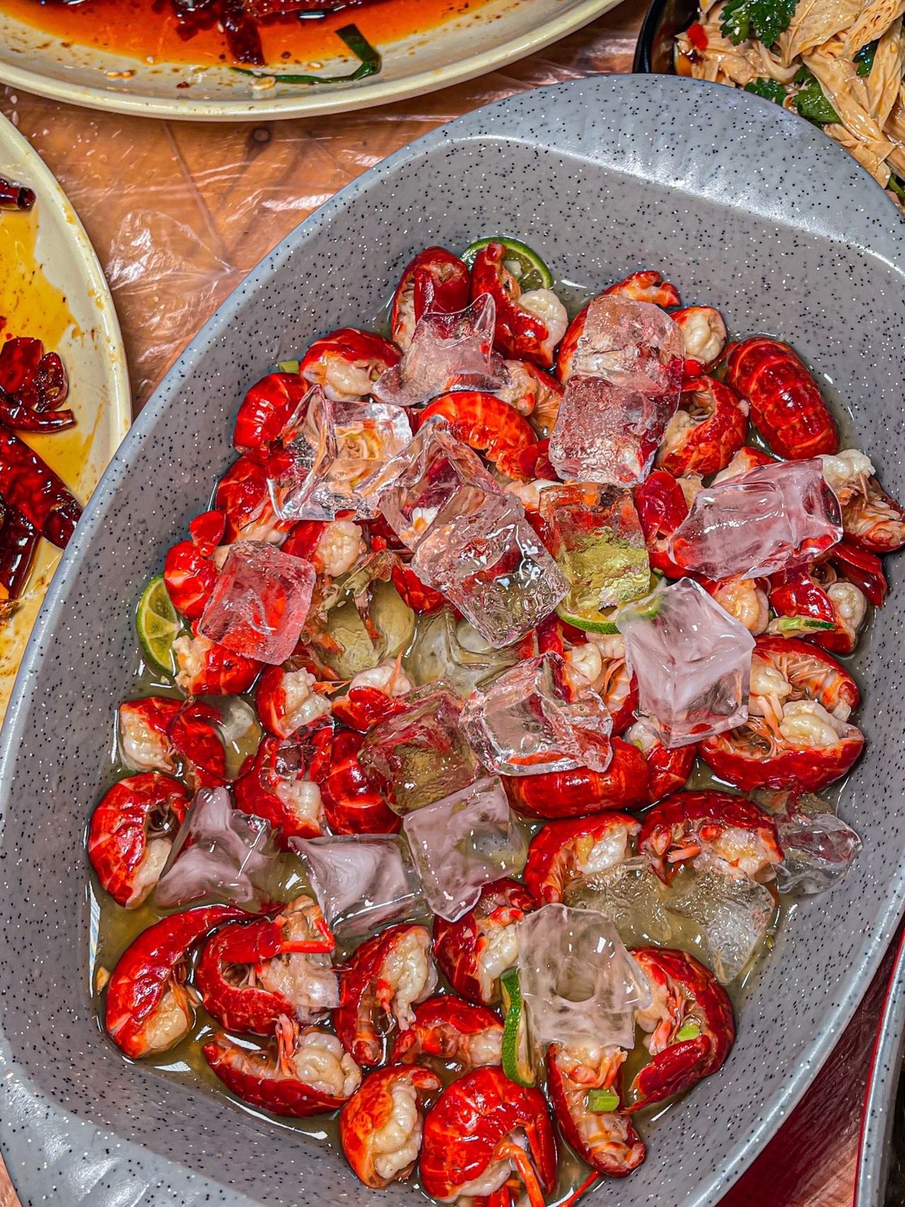 冰镇青柠虾肉:去虾头的小龙虾,吃着也太方便了!小龙虾浸泡在青柠汁里,用冰块镇着,很有夏天的味道!