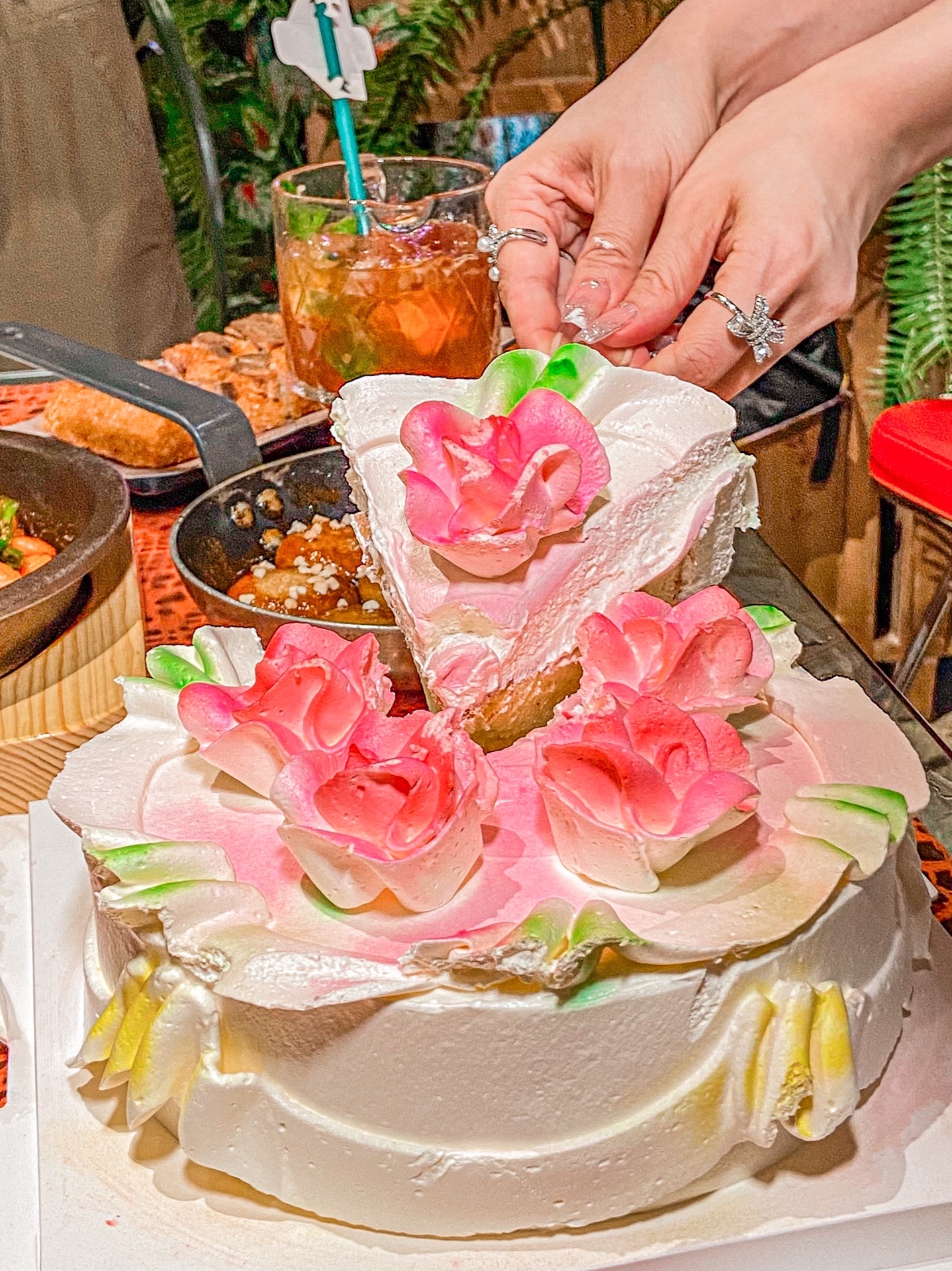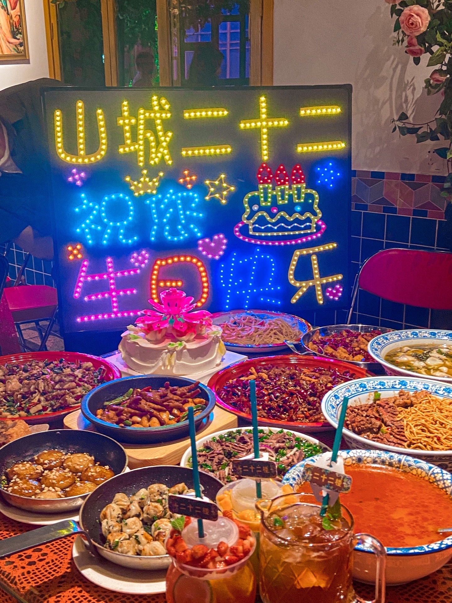 没有想到我居然在川菜馆吃到以前的老式奶油蛋糕,尤其是上面的玫瑰花和厚实的蛋糕底真的仿佛回到小时候!不过拿出灯牌的时候我和我的朋友都惊呆了哈哈