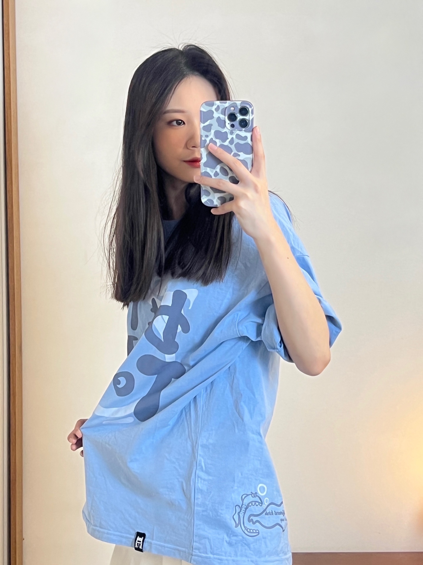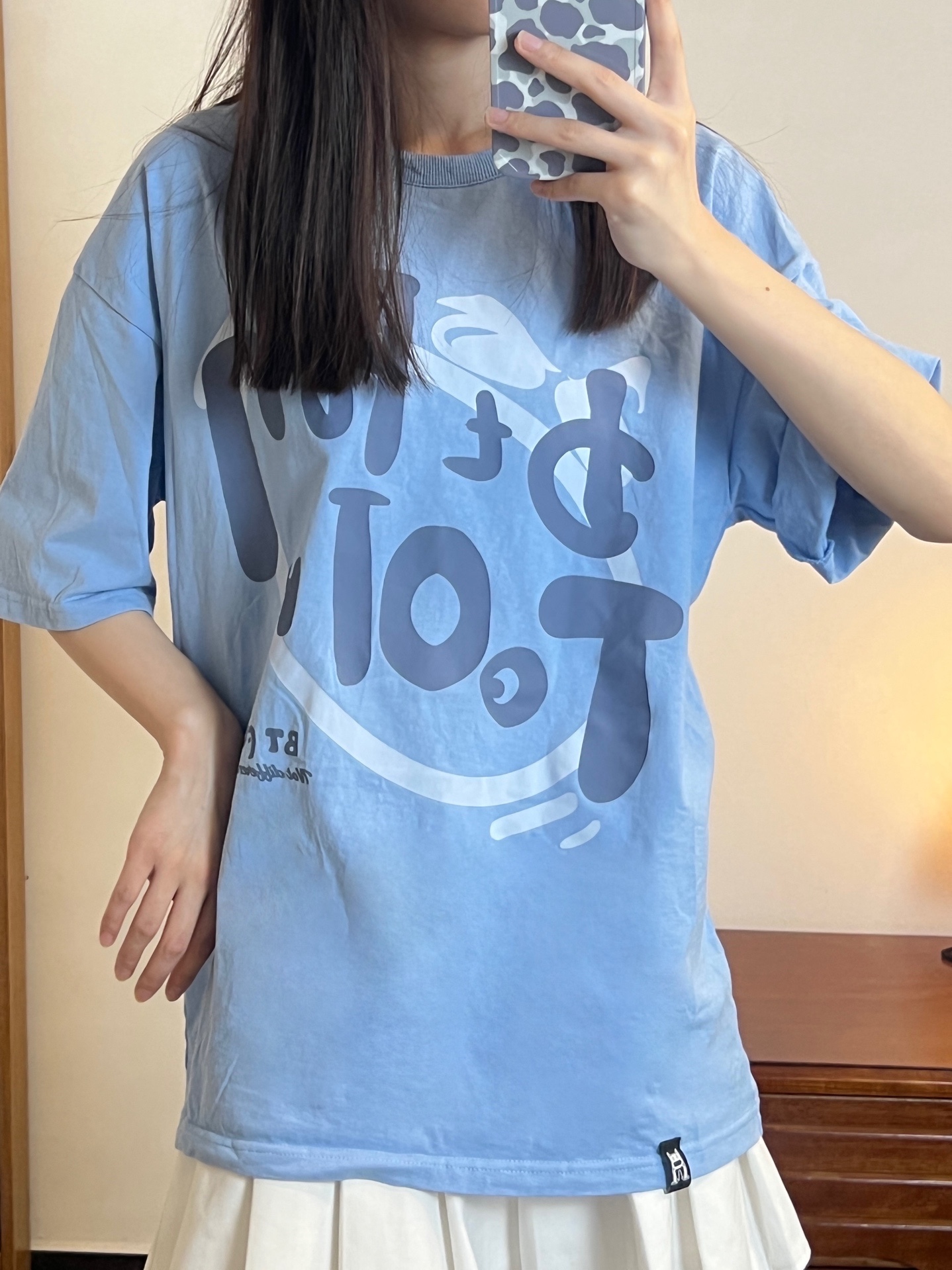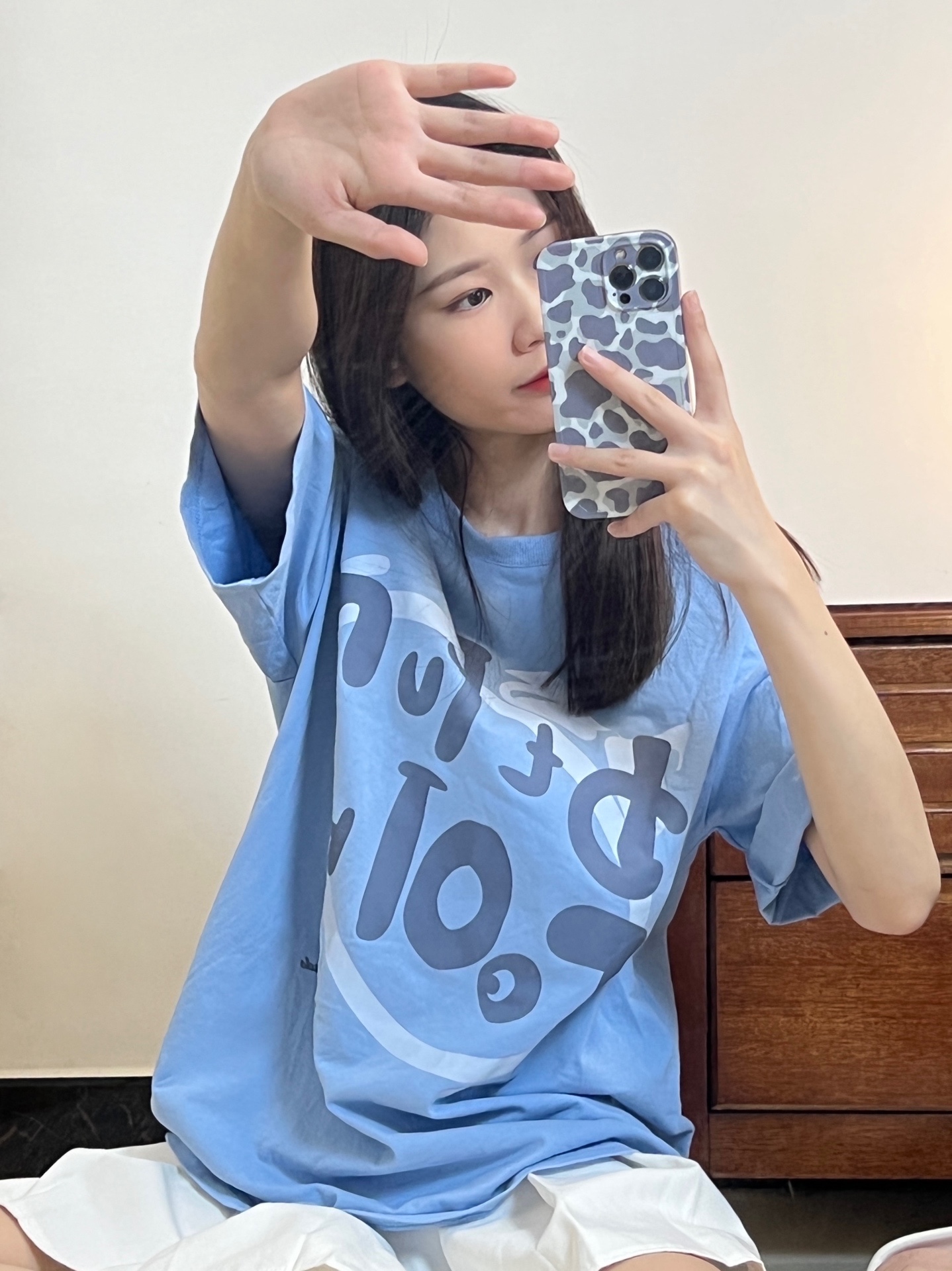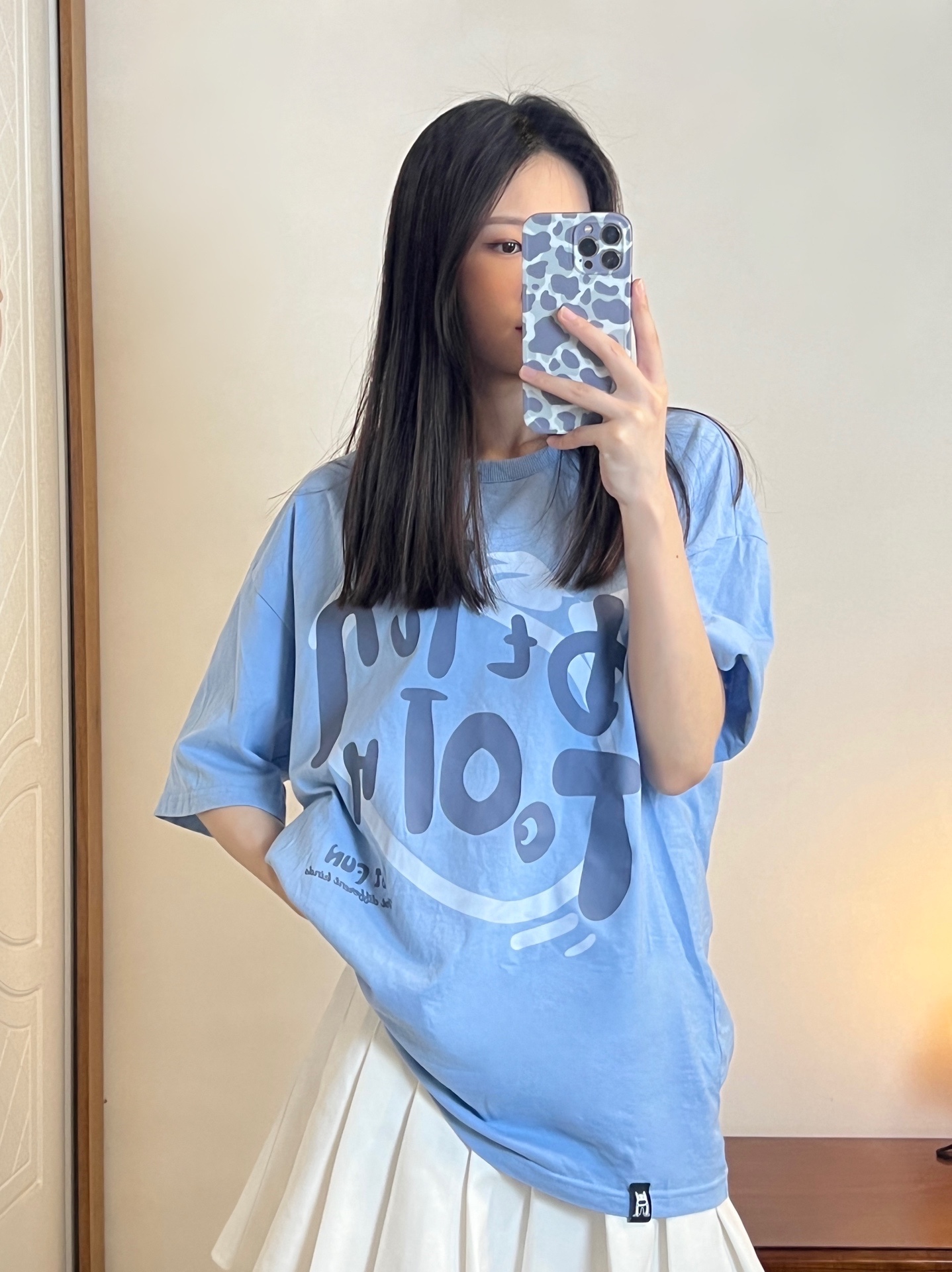 蓝色T恤夏天穿真的好清爽➕搭配白色短裙 元气少女感爆棚~