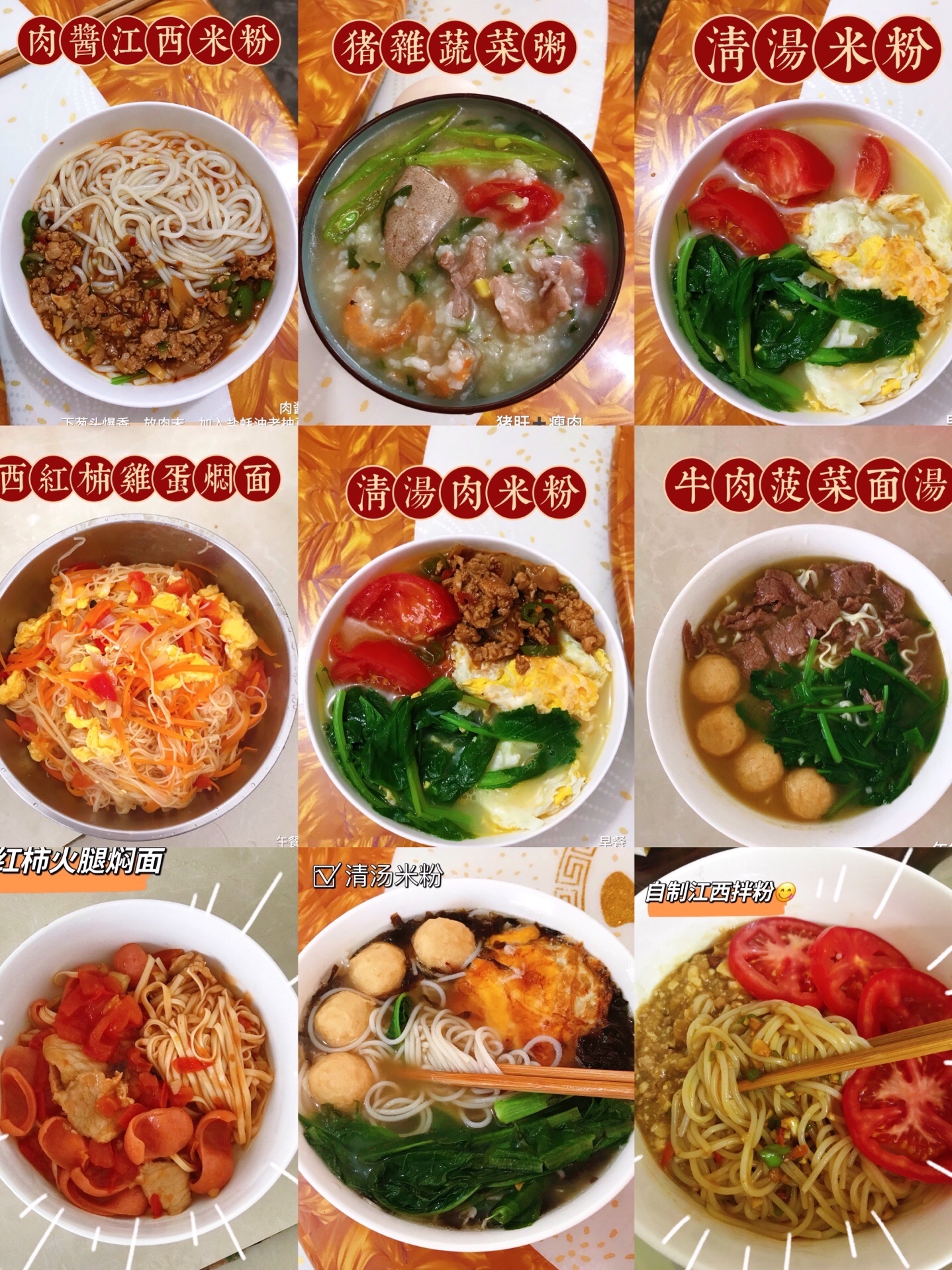 江西拌粉、肉酱拌粉、清汤米粉、胡萝卜米粉丝