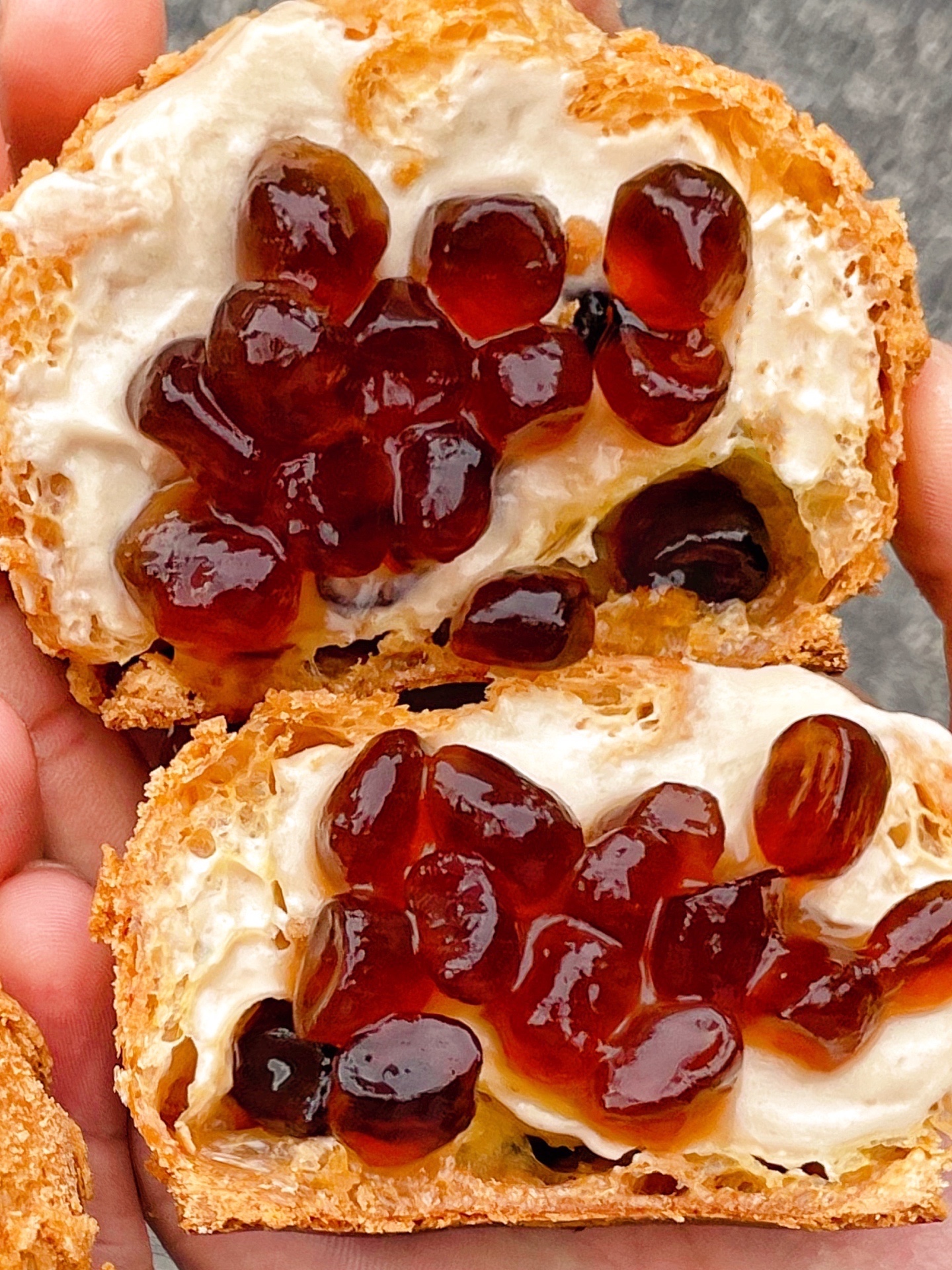 咬下去伯爵奶茶风味的奶油就溢出来了🤩这谁顶得住!QQ弹弹的脆啵啵真的超级加分~